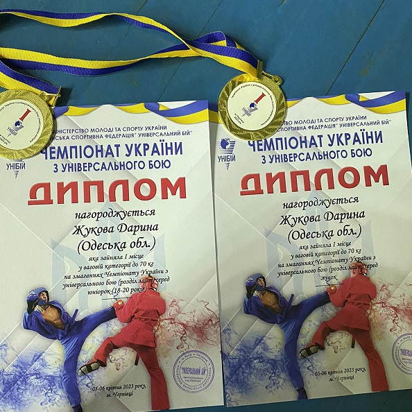 05-06 квітня 2023 року у Чернівцях пройшов Чемпіонат України з універсального бою. У ньому взяли участь понад 300 учасників з різних областей України. У складі збірної команди Одеської області Жукова Дарина зайняла 1 місце у ваговій категорії до 70 кг, розділ лайт серед юніорок та 1 місце у ваговій категорії до 70 кг, розділ лайт серед жінок.