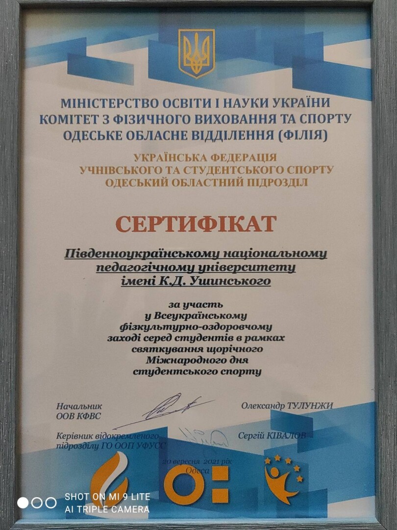 Команда Університету Ушинського взяла участь у зазначених спортивних змаганнях, продемонструвала найкращі результати й отримала Сертифікат від Української федерації студентського спорту, а також інші нагороди та подяки.