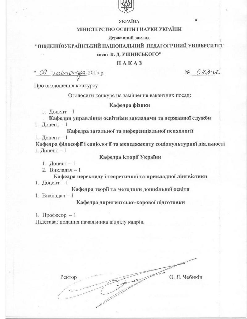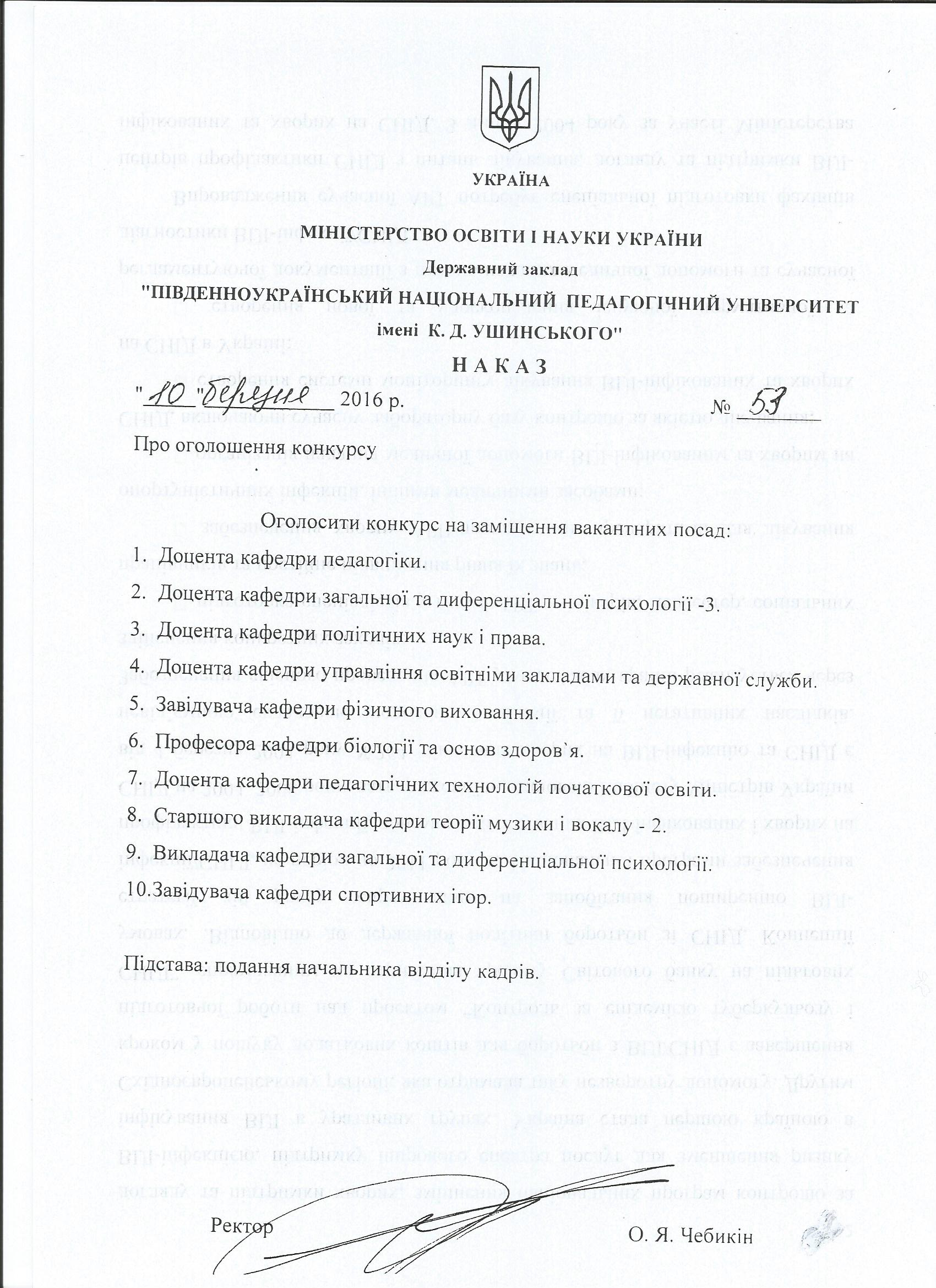 Про оголошення конкурсу на заміщення вакантних посад (наказ від 15.01.2016 р.№2-ОС). Дата оголошення 19.01.16