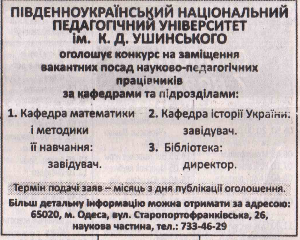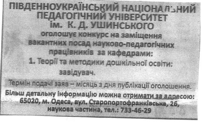ПІВДЕННОУКРАЇНСЬКИЙ НАЦІОНАЛЬНИЙ ПЕДАГОГІЧНИЙ УНІВЕРСИТЕТ імені К. Д. УШИНСЬКОГО