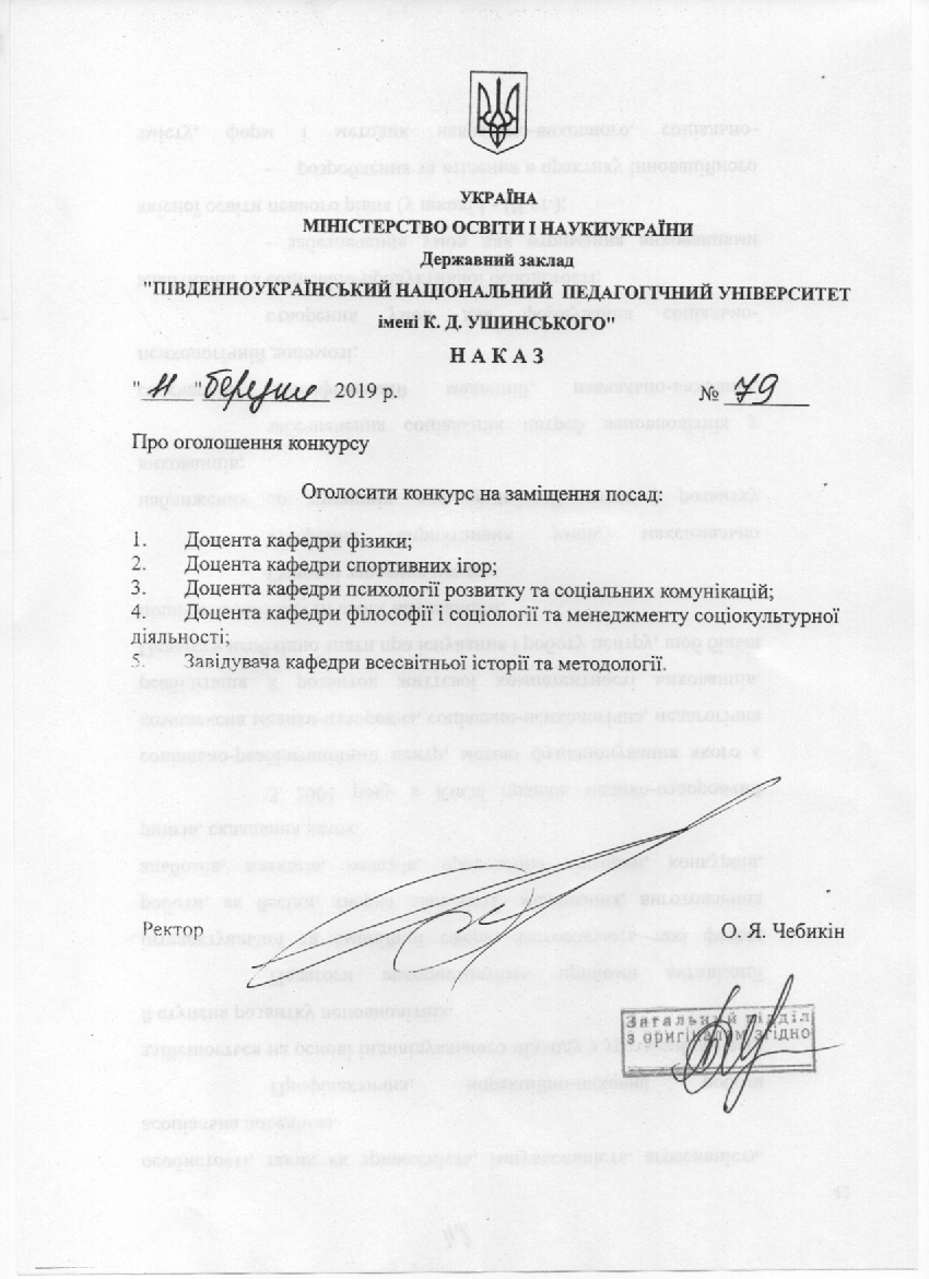 Конкурс на заміщення вакантних посад. Наказ №79 від 11 березня 2019 року.