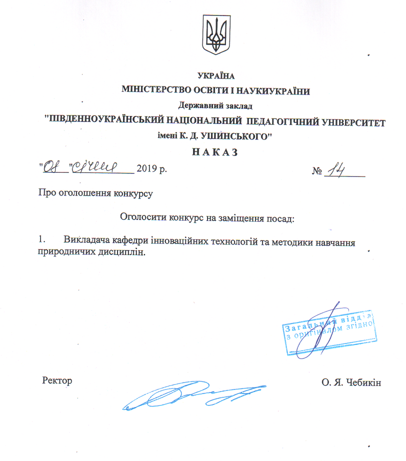 Конкурс на заміщення вакантних посад. Наказ №14 від 08 січня 2019 року.