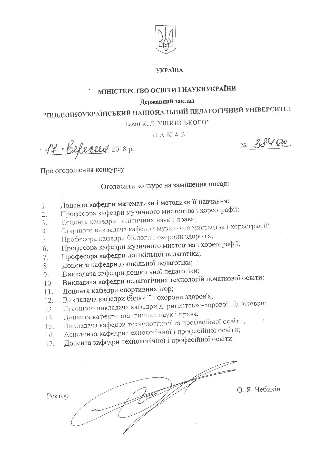 Конкурс на заміщення вакантних посад. Наказ №331-ОС від 17 вересня 2018 року. (2)