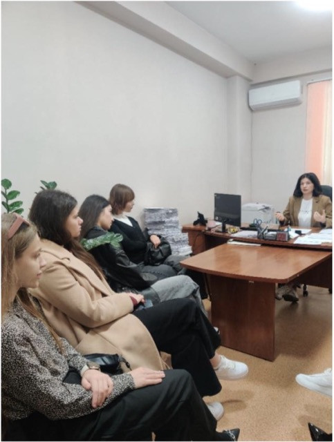 The students majoring in "Public Management and Administration" of South Ukrainian National Pedagogical University named after K.D. Ushynsky visited the Prymorsky Department of State Registration of Civil Status Acts in the city of Odesa of the Southern Interregional Department of the Ministry of Justice (city of Odesa). This introductory meeting became a valuable experience for future specialists in the field of public administration. The head of the SRCSA department, Tetyana HOROSHKO, told the students in detail about the main areas of activity of the institution, the list of documents issued by the department, and also shared interesting cases from work practice.