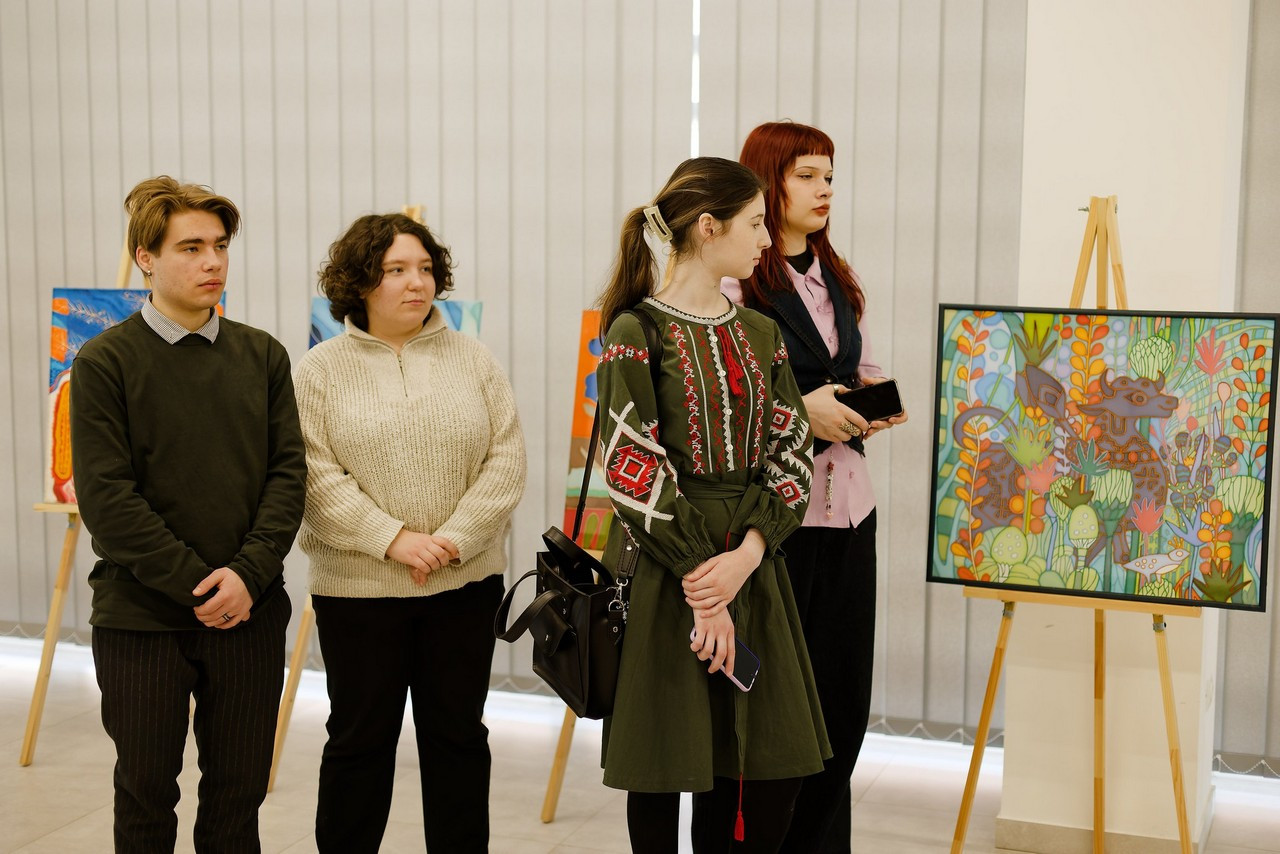 Within the framework of the program “Dimensions of Identity in the Visual Art of Student Youth”, the exhibition determined that the young generation of artists relies on the cultural memory of generations and defines their belonging to the roots of the family and national values in an international context. Young artists in various types of art and techniques (painting, graphics, tapestry, batik, leather processing, etc.) showed their own identity through the prism of authentic national.