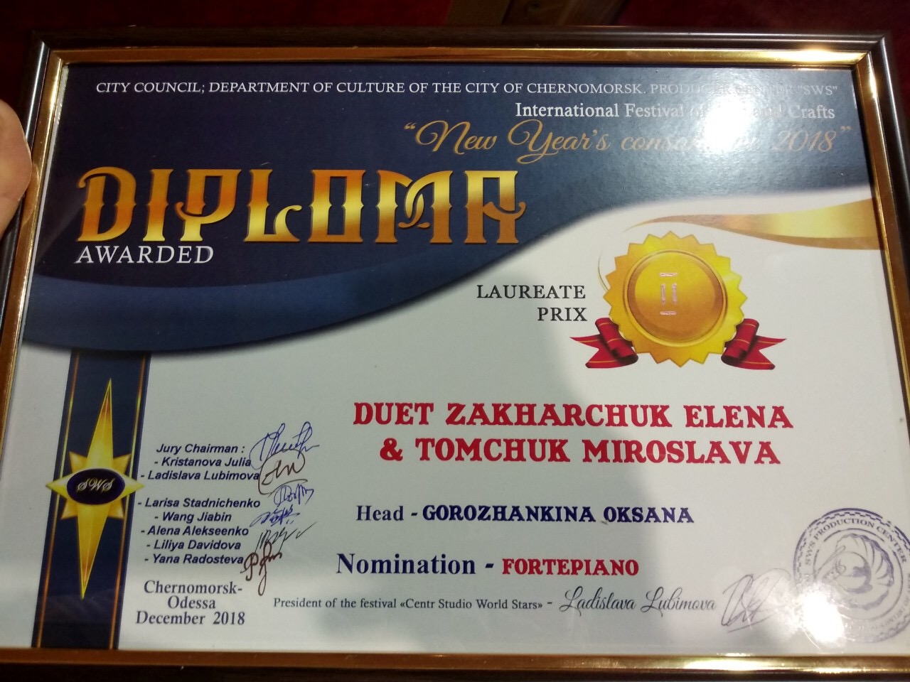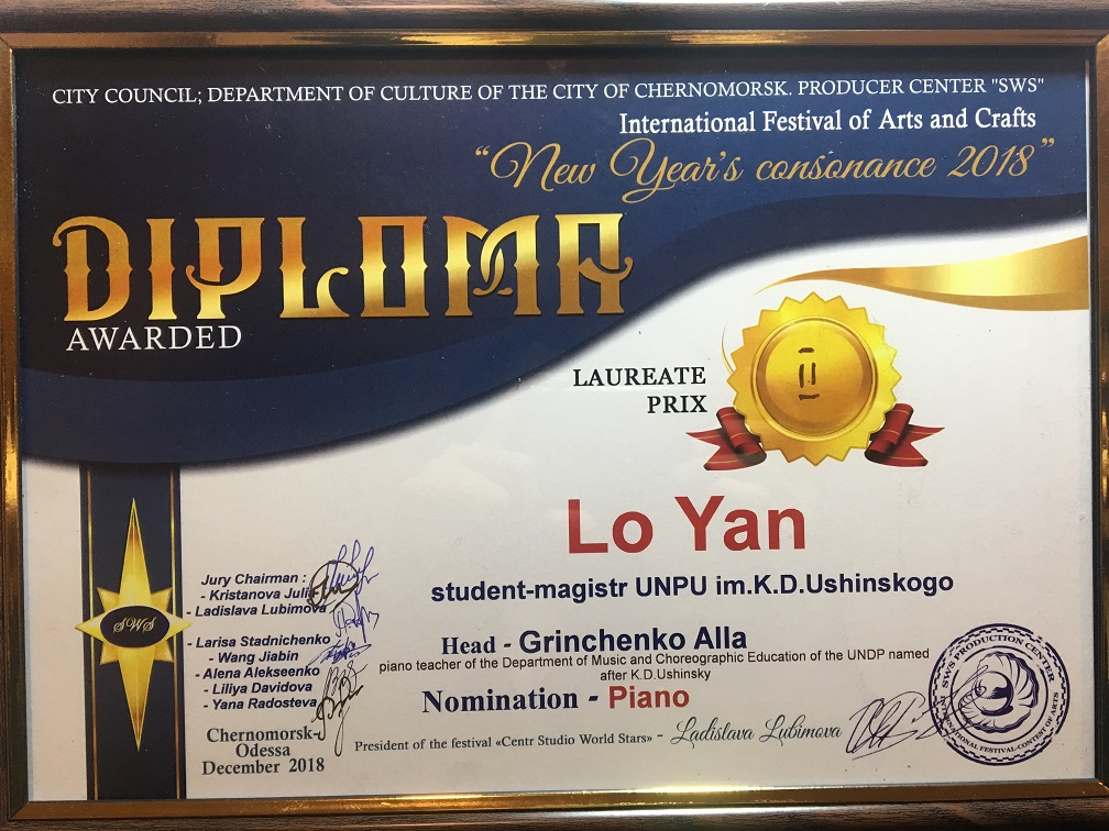 In the nomination "Instrumental genre" the laureates of the 2nd grade are the students of the Faculty of Music and Choreography: Lo Yang (class of Grynchenko A.M.) and a piano duo composed by Myroslava Tomchuk and Olena Zakharchuk (class of associate professor Horozhankina O.Yu.).