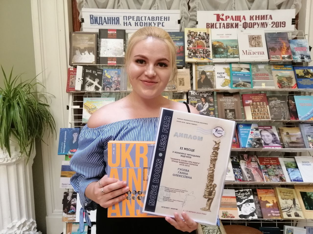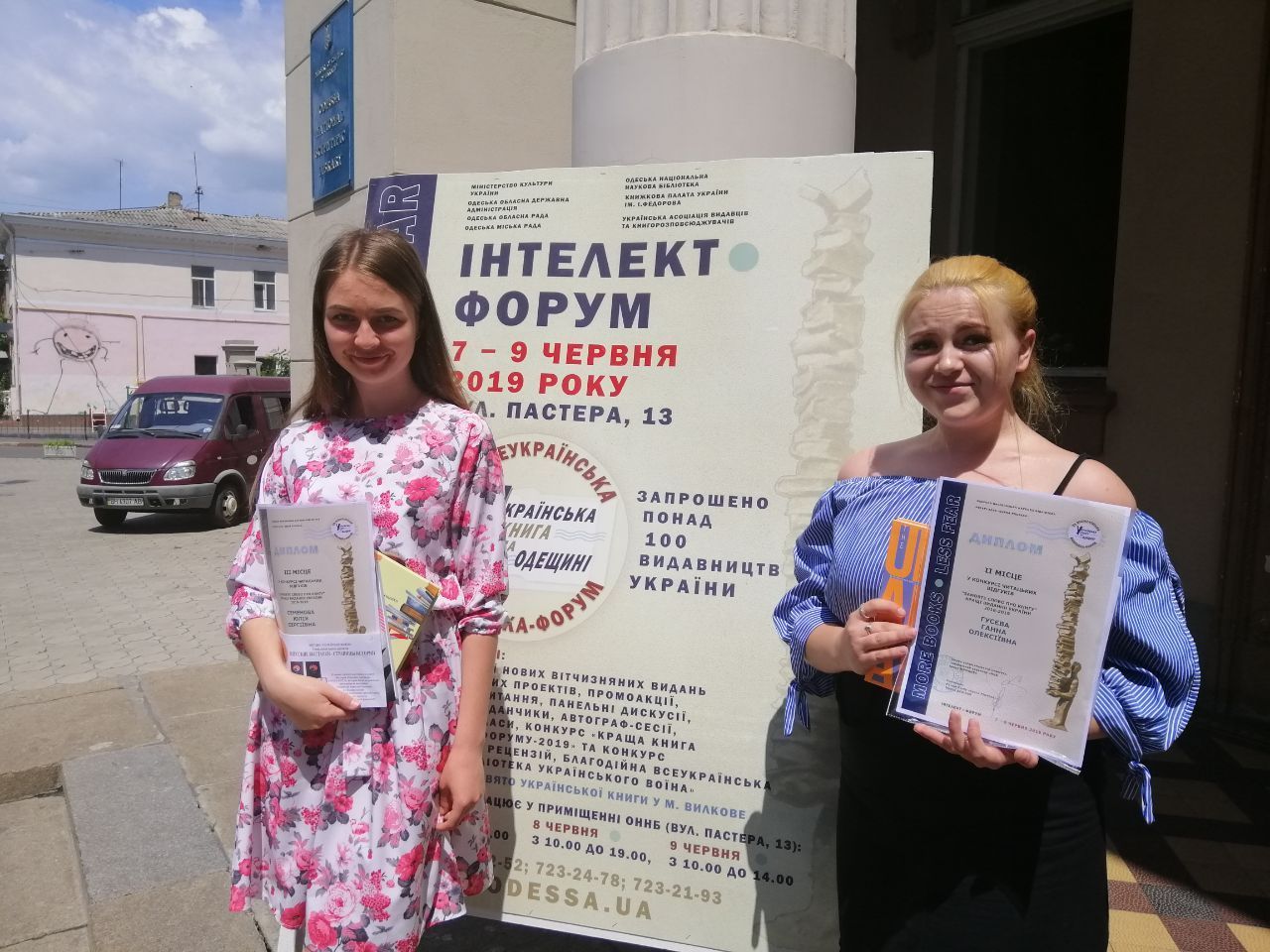 June 9, 2019, the students of the Faculty of Philology - Hanna Guseva (2 year) and Yulia Semenova (1 year) within the framework of the 20th All-Ukrainian Exhibition-Forum "Ukrainian Book in Odesa Region" at the Odesa National Library were awarded with diplomas of the 2nd and 3d degrees, as well as money prizes for the victory in the contest of readers reviews "Order the Word about the Book". The supervisor is the lecturer of the Department of Ukrainian and Foreign Literature Pavliuk N. L.