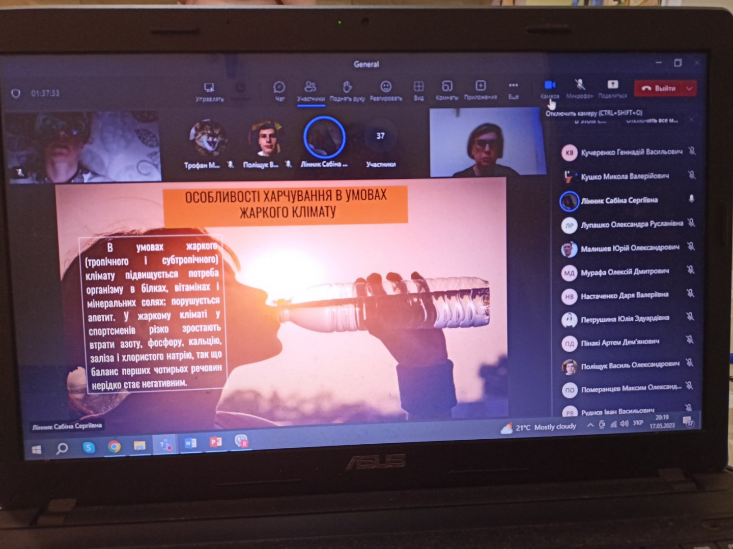 On May 17, 2023, scientific and pedagogical staff of the Department of Theory and Methodology of Physical Culture and Sports Disciplines held an online seminar on the topic: " Topical issues of training specialists in physical culture and sports in institutions of higher education" for the Day of Science. Scientific and pedagogical workers of the department of theory and methods of physical culture and sports disciplines, students of the first (bachelor's) level of higher education, second (master's) level of higher education and young scientists took part in the event.