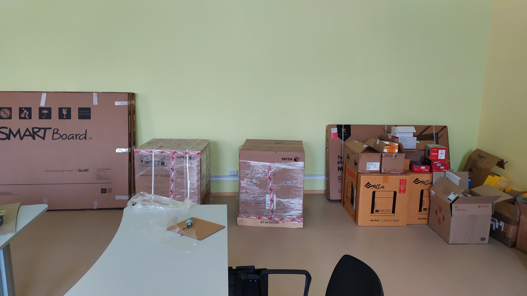 До складу обладнання ввійшли 3Д-принтери, сучасні ноутбуки, планшети, інтерактивне обладнання, робототехнічні пристрої, міні-комп'ютери, станки із програмним інтерфейсом.