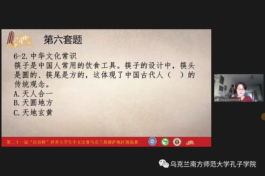 2021年12月17日,第二十一届“汉语桥”世界大学生中文比赛乌克兰南方地区预选赛,在乌克兰南方师范大学孔子学院的精心策划和组织下,以线上答题和视频展示相结合的方式,如约和大家相聚在云端。