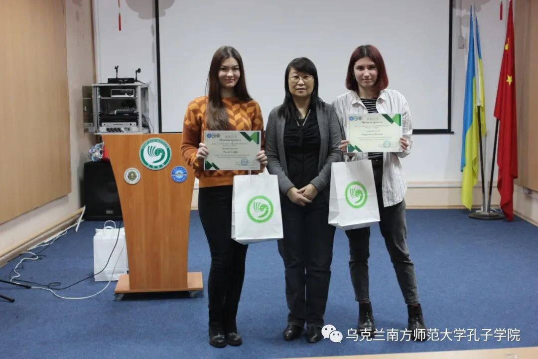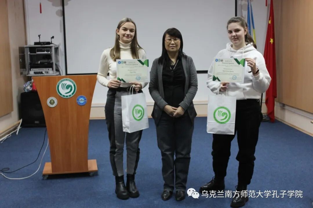 2021年12月24日,第二十一届“汉语桥”世界大学生中文比赛乌克兰敖德萨地区预选赛颁奖仪式在南师大孔院本部举行,乌克兰南方师范大学孔子学院中方院长宗成菊女士出席并为获奖选手颁奖。