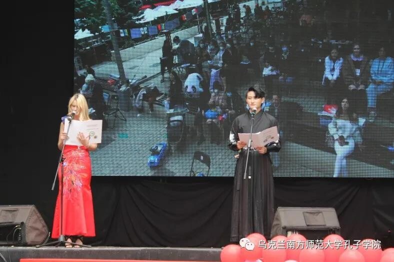 南师大孔院的师生准备了精彩丰富的文艺汇演,既展示了中国传统文化的深厚与悠远,又体现了乌克兰的民族特色。现场还有妙趣横生的问答和抽奖,拉近了与观众们的距离。