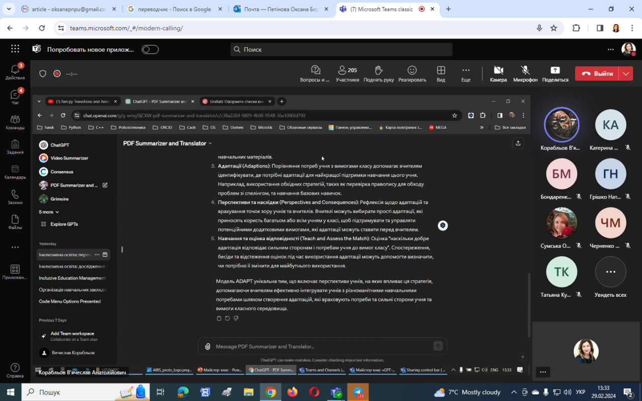 1Штучний інтелект увірвався в наше життя з відкриттям доступу до сервісу ChatGPT ще у листопаді 2022 року. Дискусійним залишається питання про роль ШІ в розвитку сучасної освіти. Серед актуальних проблем, що опинились в центрі філософського осмислення – Homo virtualis як продукт цифрової культури та Homo digitalis як запит на нову конфігурацію індивідуальності. Аспіранти ОНП «Філософія» 2 року навчання разом з Гарантом ОНП проф. Петіновою О. Б., 29 лютого 2024 року відвідали майстер-клас «GPT-store. ШІ-сервіси в навчанні», проведений в Університеті Ушинського. Спікери – завідувач навчальної лабораторії штучного інтелекту та робототехнічних систем В’ячеслав Корабльов та здобувач освіти другого (магістерського рівня Навчально-наукового інституту природничо-математичних наук, інформатики та менеджменту Віктор Корабльов. Захід сприяв формуванню програмових результатів навчання ОНП (зокрема, ПРН 07. Застосовувати сучасні інструменти і технології пошуку, оброблення та аналізу інформації, зокрема, статистичні методи аналізу даних великого обсягу та складної структури, спеціалізовані бази даних та інформаційні системи та ПРН 09. Організовувати і здійснювати освітній процес у сфері філософії, його наукове, навчально-методичне та нормативне забезпечення, застосувати ефективні методики викладання навчальних дисциплін) та відпрацюванню цифрових навичок здобувачів.
