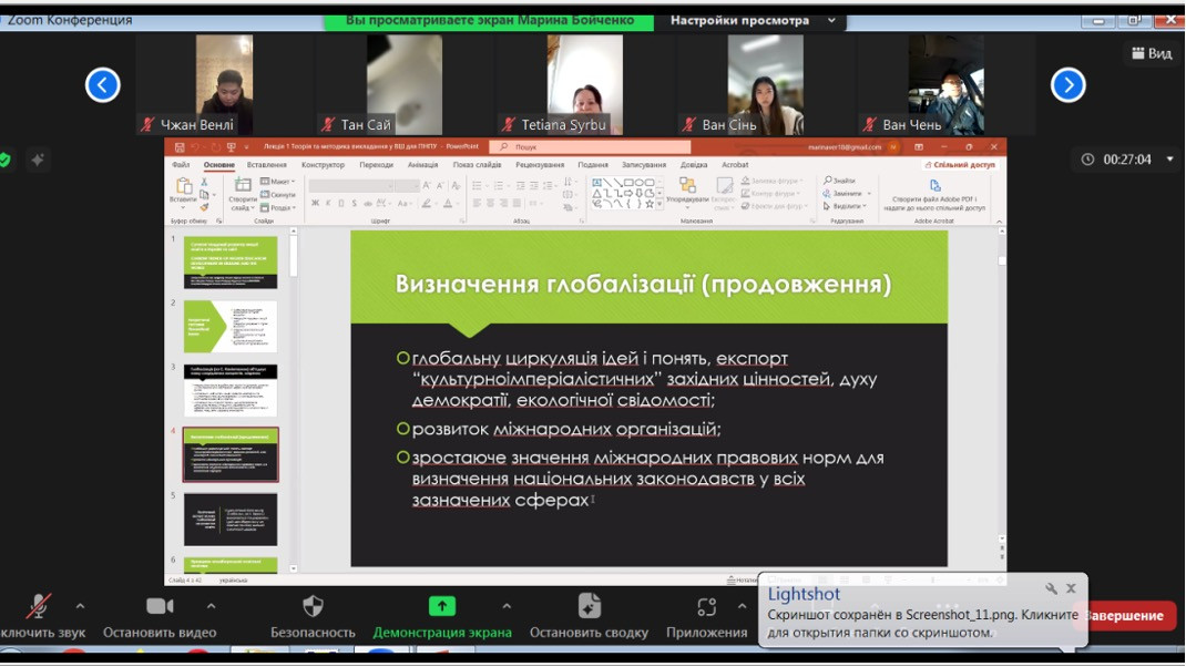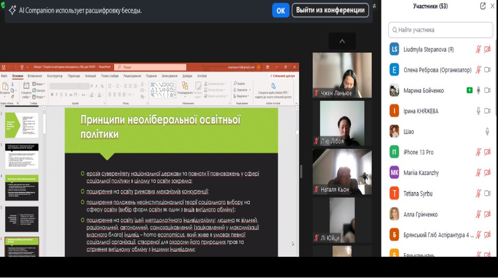 29 березня 2024 року в межах програми «Гостьовий лектор» для аспірантів спеціальностей 011 ОНП «Освітні педагогічні науки» та «Мистецька педагогіка вищої освіти», 014 Середня освіта (Музичне мистецтво), 015 Професійна освіта для наукових керівників було проведено зустріч з докторкою педагогічних наук, професоркою, завідувачкою кафедри педагогіки Сумського державного педагогічного університету імені А.С.Макаренка Бойченко Мариною Анатоліївною. У якості гостьового лектора професорка Бойечнко виступила з цікавою лекцією на тему: СУЧАСНІ ТЕНДЕНЦІХ РОЗВИТКУ ВИЩОЇ ОСВІТИ В УКРАЇНІ І СВІТІ (CURRENT TRENDS OF HIGHER EDUCATION DEVELOPMENT IN UKRAINE AND THE WORLD; 乌克兰和世界高等教育发展的当前趋势).