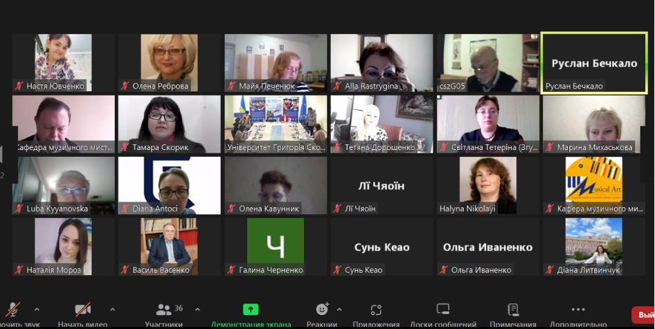 Особливу зацікавленість викликали доповіді наших аспірантів на такі теми: «Регіональні особливості підготовки майбутніх викладачів вокалу в університетах Китаю» (Чжан Венлі), «До питання сучасної виконавської інтерпретації національно-регіональних традицій пісенного фольклору Китаю» (Сунь Кеао), «Творчий потенціал методичної підготовки здобувачів вищої музично-педагогічної освіти» (Валерія Добруха), «Теорія і практика формування здатності до фахового саморозвитку в майбутніх викладачів вокалу» (Лю Чжиго), «Антропологічні контексти вокально-виконавської саморегуляції майбутніх магістрів музичного мистецтва» (Бянь Наньнань).