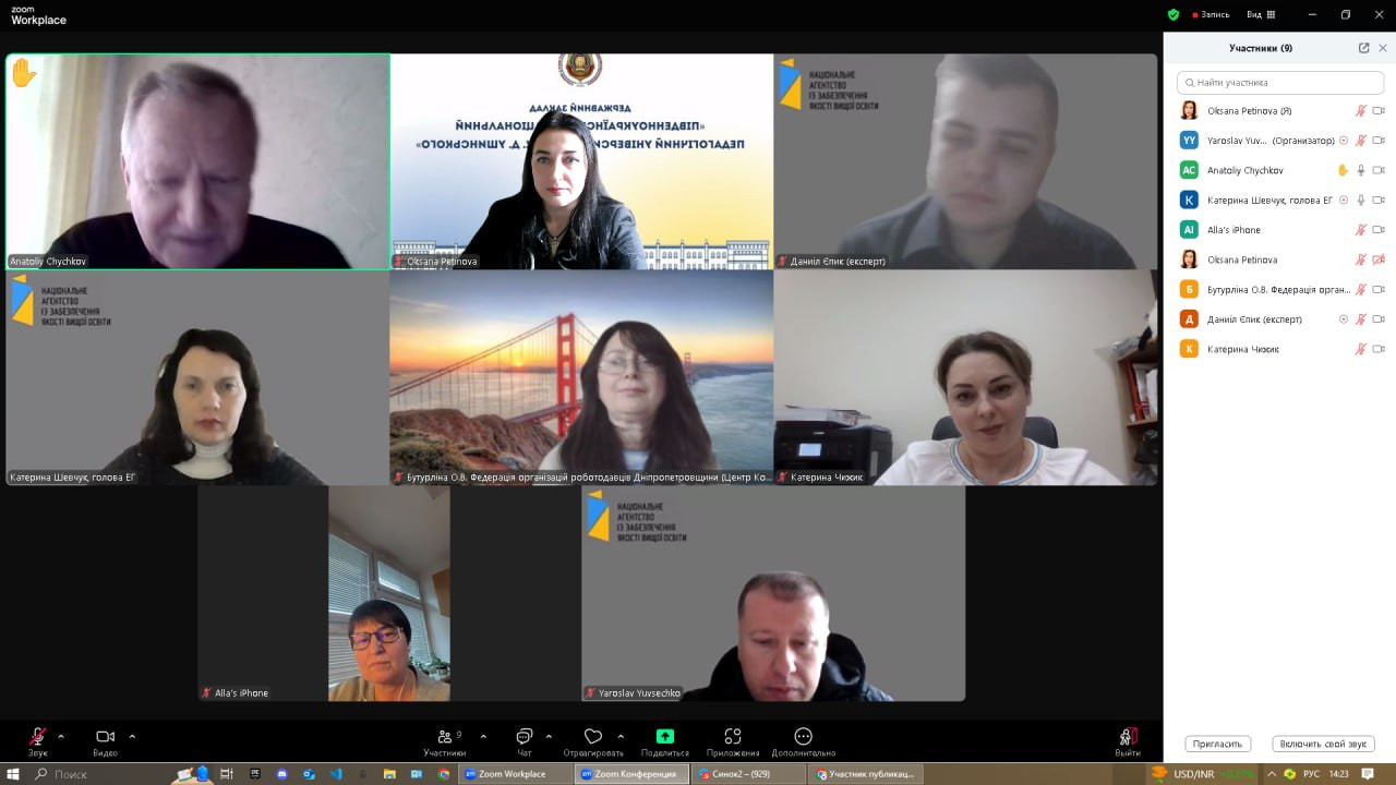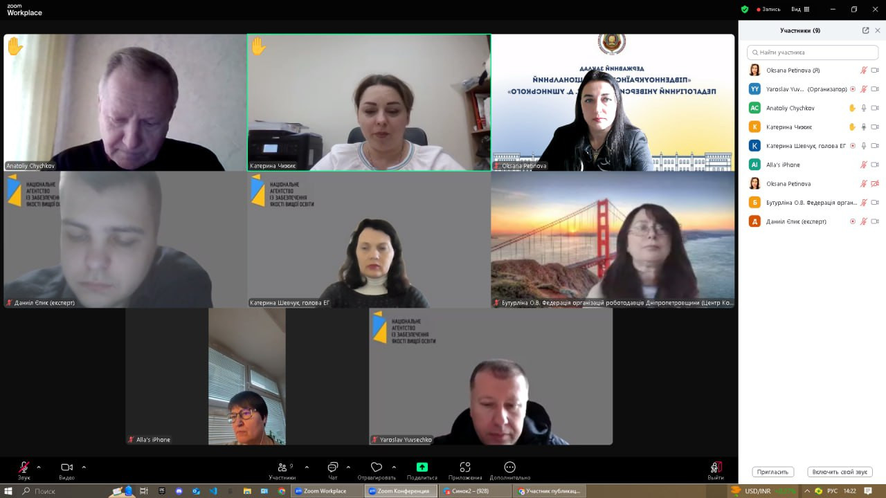 Гарант ОНП «Філософія» д.філос.н., проф. Петінова О. Б. взяла участь у процедурі акредитаційної експертизи освітньо-наукової програми «Філософія» за спеціальністю 033 «Філософія» за третім (освітньо-науковим) рівнем (аспірантура) НТУ «Дніпровська політехніка», ЗВО-партнер.