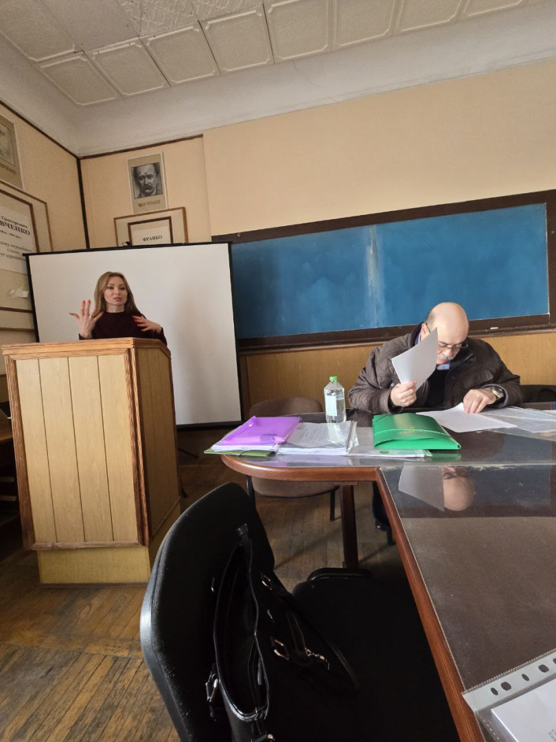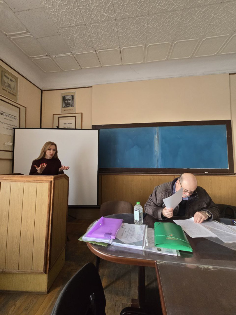 19 січня 2026 року відбувся передзахист дисертаційних досліджень здобувачів четвертого року навчання третього (освітньо-наукового) рівня вищої освіти, що став вагомою подією в науковому житті кафедри та засвідчив актуальність і динамічний розвиток сучасних соціально-філософських студій. У межах наукового обговорення було представлено роботи Людмили Городнюк на тему «Цифрова людина в екзистенційній площині соціально-філософської рефлексії» (науковий керівник – проф. Євген Борінштейн) та Віолети Світлицької на тему «Феномен жінки у філософському дискурсі» (науковий керівник – проф. Оксана Петінова). Під час засідання виступили рецензенти, відбулося ґрунтовне обговорення ключових положень дисертацій, застосованих методологічних підходів, наукової новизни та практичної значущості отриманих результатів. В активній дискусії взяли участь аспіранти Ігор Усатюк і Микола Начев, докторантка Наталія Рибка, а також науково-педагогічні працівники кафедри, – Зоя Атаманюк, Катерина Ткаченко, Олена Лісеєнко. Загалом передзахист засвідчив належний рівень підготовки здобувачів, зрілість їхніх наукових позицій та сформованість дослідницьких компетентностей, необхідних для завершення дисертаційних робіт. Обговорення стало продуктивним майданчиком для обміну думками, уточнення теоретико-методологічних акцентів і окреслення подальших напрямів наукового пошуку, що сприятиме успішній підготовці до захисту.