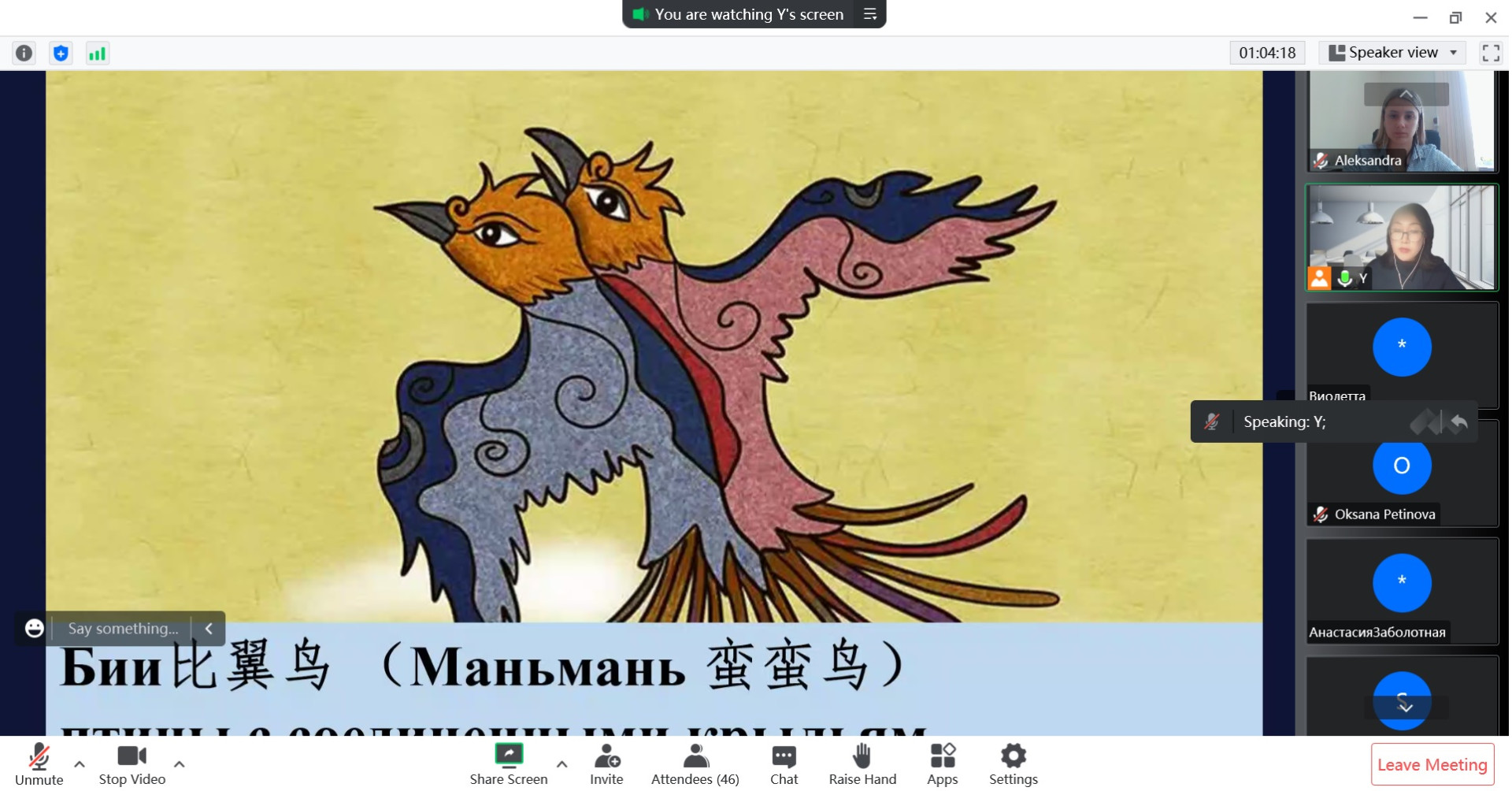 Професорка Харбінського інженерного університету пані Ван Їн репрезентувала цікавий матеріал про стародавні міфи Піднебесної, народні легенди, а також сучасну інтерпретацію міфологічних персонажів і їх відображення в художній літературі.