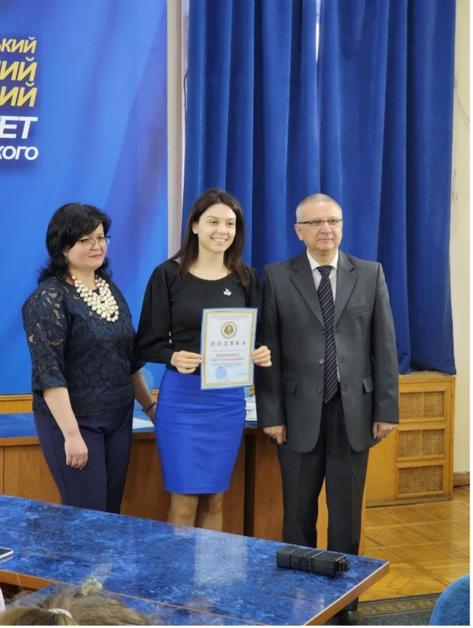 Науковий керівник, завідувач кафедри перекладу і теоретичної та прикладної лінгвістики, к.філол.н., доц. Ілона ДЕРІК, одержала Подяку за якісну підготовку переможця Всеукраїнського конкурсу.