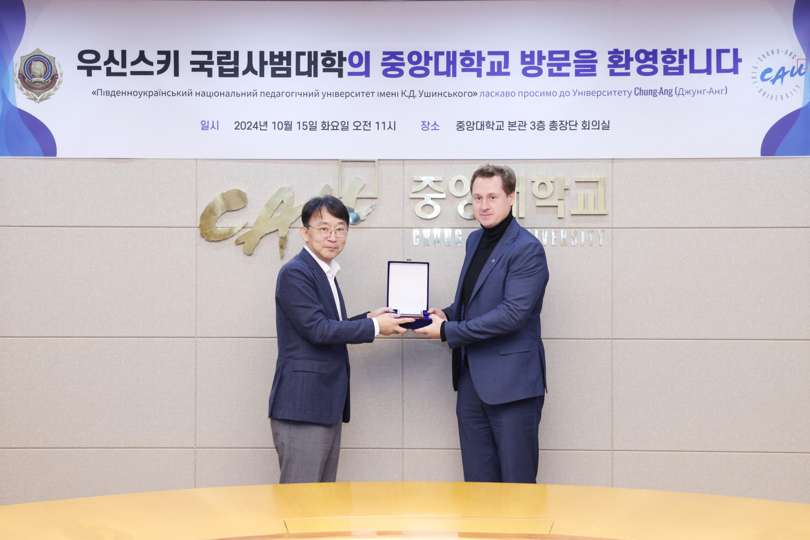 15 жовтня 2024 року відбувся круглий стіл української делегації з адміністрацією Університету Джунг-Анг з питань академічної кооперації з Університетом Ушинського. Ректор корейського університету пан ПАК Сан-Гю висловив свою повагу й підтримку українським колегам. Ректор Університету Ушинського Андрій КРАСНОЖОН повідомив про специфіку реалізації освітнього процесу в Університеті Ушинського в умовах воєнних дій в Україні, перший проректор з навчальної та науково-педагогічної роботи Ольга КОПУС презентувала акредитовані ОПП за першим (бакалаврським) та другим (магістерським) рівнями вищої освіти. Проректор з адміністративної роботи пан ЛІ Чан Гю продемонстрував українській делегації відеоролик про Університет Джунг-Анг, який спеціалізується на технічних напрямах, зокрема пов’язаних із штучним інтелектом та його використанням у фармакології, медицині, творчих спеціальностях. Олександра ПОПОВА обговорила можливості участі студентів факультету іноземних мов у програмі академічної мобільності «Global Korea Scholarship» з деканом факультету розширеного навчання паном КІМ Се Іль та керівником відділу міжнародної освіти паном О
