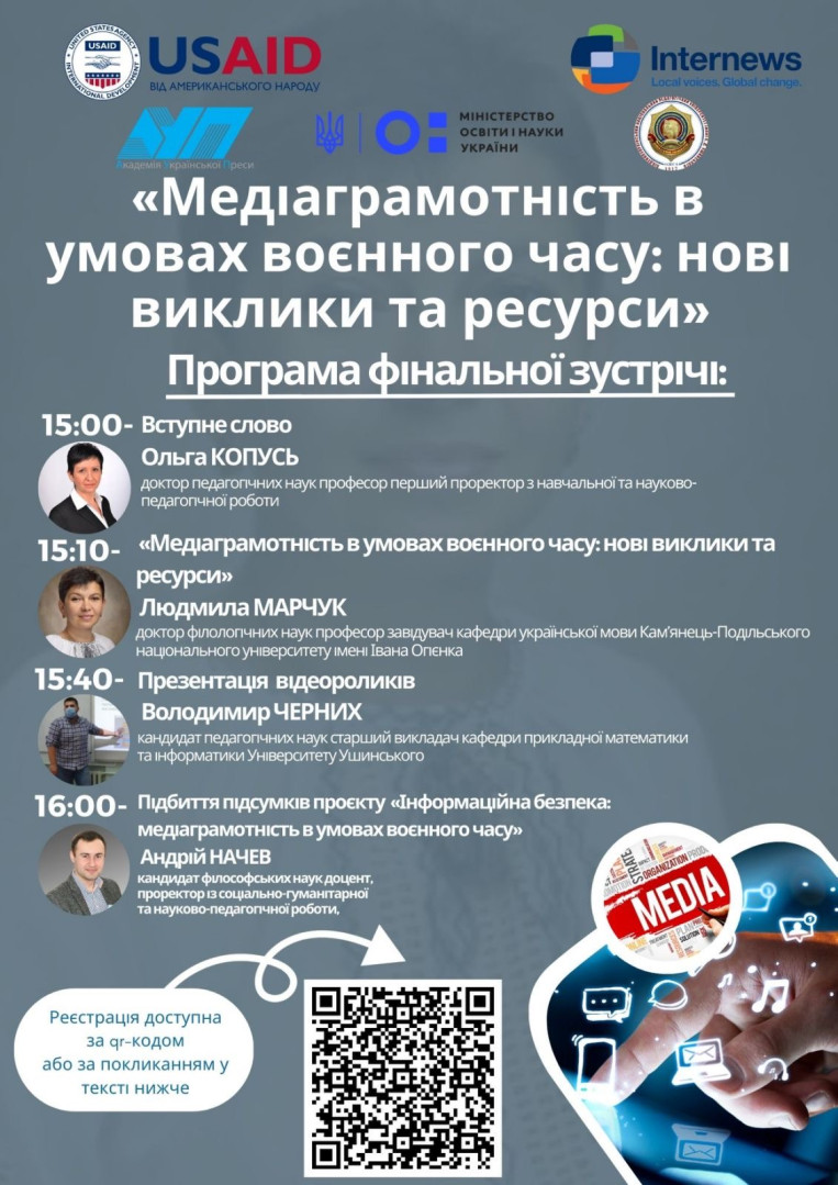 16:00 - Підбиття підсумків проєкту "Інформаційна безпека: медіаграмотність в умовах воєнного часу"