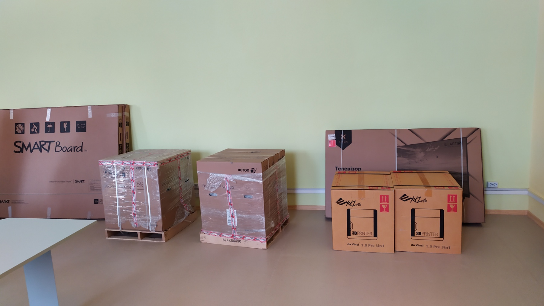 До складу обладнання ввійшли 3Д-принтери, сучасні ноутбуки, планшети, інтерактивне обладнання, робототехнічні пристрої, міні-комп'ютери, станки із програмним інтерфейсом.