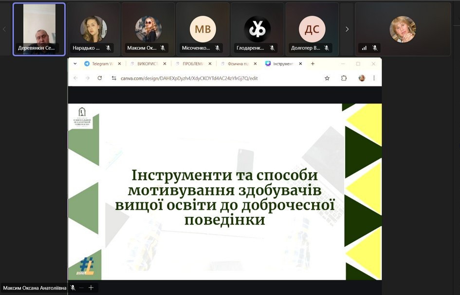 19 березня 2026 року в інституті проведено відкриту зустріч для здобувачів освіти та працівників, у якій взяли участь керівник уповноваженого підрозділу університету з питань запобігання та протидії корупції, кандидат юридичних наук, доцент Деревянкін С. Л., а також директор бібліотеки університету, голова групи сприяння академічній доброчесності Максим О. А. У межах заходу було висвітлено принципи антикорупційної політики університету, механізми запобігання корупційним проявам в освітньому середовищі, функціонування каналів подання звернень і скарг, а також питання академічної доброчесності, зокрема види академічних порушень і відповідальність за їх вчинення. Окрему увагу приділено інституційній політиці щодо використання генеративного штучного інтелекту, процедурі перевірки академічних текстів за допомогою системи StrikePlagiarism та принципам декларування використання інструментів штучного інтелекту.