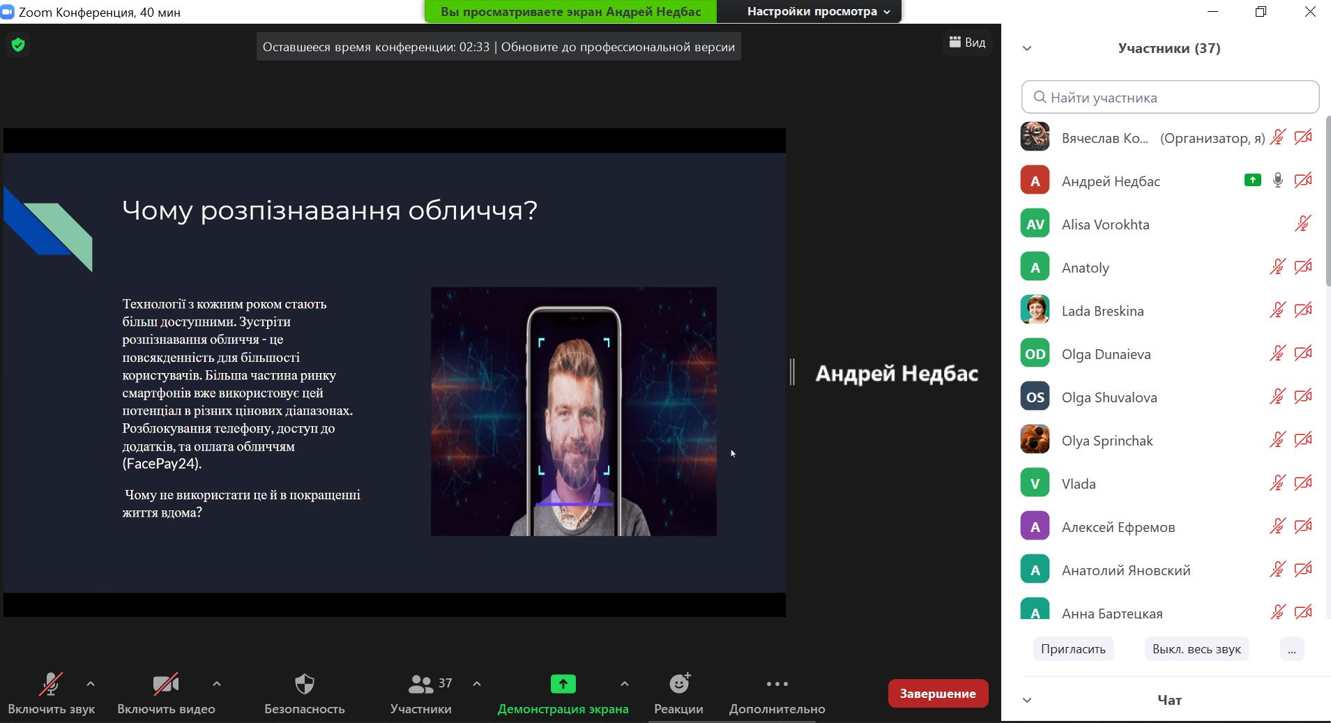 - РОЗРОБКА ПРОГРАМИ КОНТРОЛЮ ДОСТУПУ НА ОСНОВІ РОЗПІЗНАВАННЯ ОБЛИЧ, що підготував студент 4 курсу спеціальності 014 Середня освіта (Інформатика) Недбас Андрій під керівництвом старшого викладача кафедри прикладної математики та інформатики Корабльова В'ячеслава Анатолієвича.