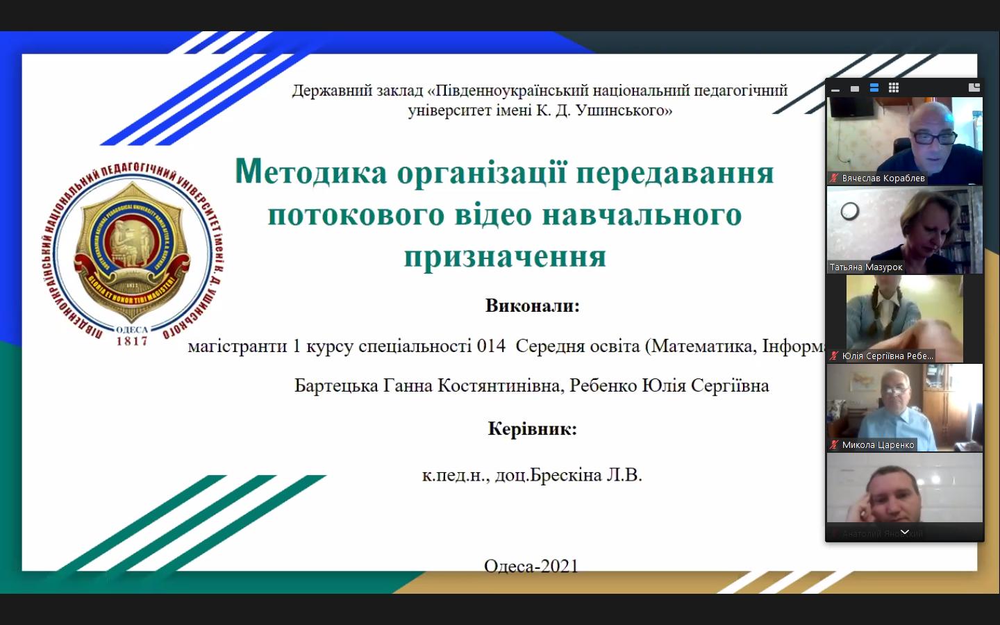 - МЕТОДИКА ОРГАНІЗАЦІЇ ПЕРЕДАВАННЯ ПОТОКОВОГО ВІДЕО НАВЧАЛЬНОГО ПРИЗНАЧЕННЯ, що підготували Бартецька Ганна та Ребенко Юлія під керівництвом доцентом кафедри прикладної математики та інформатики Брескіної Лади Валентинівни.