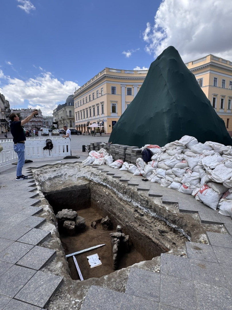 The Khadzhybey Castle has been found. The discussions about its localization, which lasted for almost 200 years, have been put to an end. They were exacerbated by the lack of reliable cartographic data and written sources, as well as traces of this defensive structure, which was blown up by Russian troops shortly after the assault of 1789, and later dismantled for building materials. Until recently, we did not know whether there were any chances at all to find the remains of the castle, since the structure stood on the very edge of the coastal plateau, and the nature of landslide processes in the area of Prymorsky Boulevard is disappointing. Already in 2020, following the results of our first joint expedition, it became clear that the search for the castle should be narrowed to the territory of the semicircular square. Therefore, in the summer of 2021, we set up three excavations there, north of the Duke monument and several more pits along the alleys. This year, the work continued to the east of the old sites and brought the long-awaited result. Thus, the castle was located between the semicircular building No. 8, the funicular, the Duke and the alleys of the southern part of the boulevard, occupying a square of approximately 40×40 m.