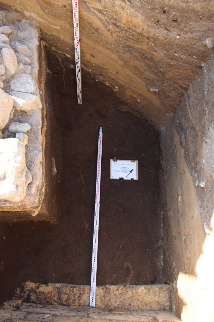 The base of the castle battery wall is embedded in the antique layer of the 5th century BC. This is the first time that it has been possible to trace the cultural layers of the ancient Greek settlement of Istrian Harbor within its northern border. Previously, it was assumed that its border lies somewhere in the Duka area. But now we can say for sure that it was defined by a small ancient ravine, which we managed to record in one of the excavations of 2021 in the northern part of the semicircular area. This natural barrier also formed protection from the north-western, ground side for the Hadzhybey Castle, determining the choice of its location. In addition, it is here that the highest part of the Prymorsky Boulevard plateau is located (+32 m above sea level), which gives the fortification object its advantages in controlling the harbor and approaching the mouth of two bays at once, limiting the plateau (Military and Quarantine), in one of which the Turkish port of Hadzhybey was located.