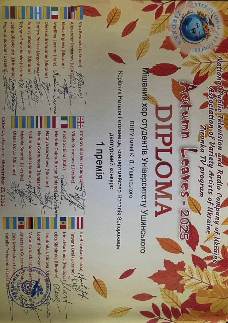 On November 19-23, 2025, the international two-tour festival-competition of arts “Autumn Leaves – 2025” was held in Odesa. Concert performances of participants in the nominations “Academic Vocal” and “Instrumental Genre” took place live in the premises of the Evangelical Reformed Presbyterian Church. Our students competed in the same category with students of Odesa National Academy of Music named after A.V. Nezhdanova and received an unprecedented number of awards! It was a real struggle, but our talents proved their mastery:
