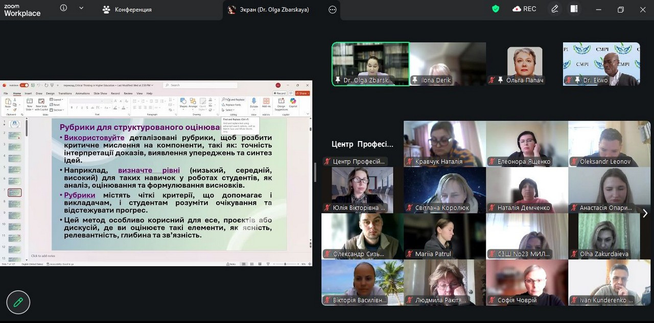 The internship program was officially launched at the Institute of Creative Thinking "OZ CREDO" with the support of the South Ukrainian Center for Professional Development of Managers and Specialists in the Socioeconomic Sphere within the framework of the signed agreement on cooperation and implementation of the international educational project "ThinkEDU: Development of Critical Thinking in the Personnel Training System". The representatives of 41 higher education institutions from 22 regions of Ukraine participated, which indicates a high level of interest among educators in the development of critical thinking as a key competence of modern times.