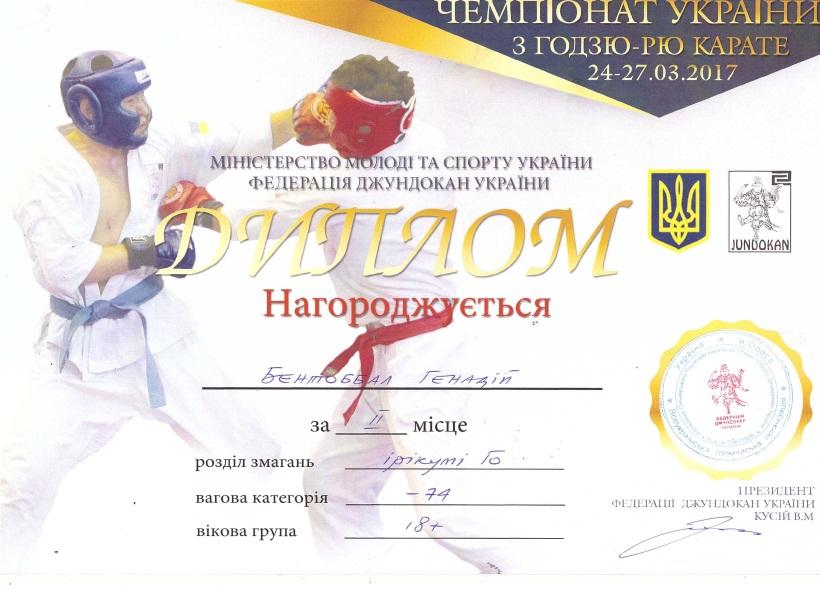 Congratulations to Gennady Bentobbal !!! fShare Congratulations on winning the Championship of Ukraine in Goju-ryu Karate to Gennady Bentobbal, a third year student of the Faculty of Physical Education.