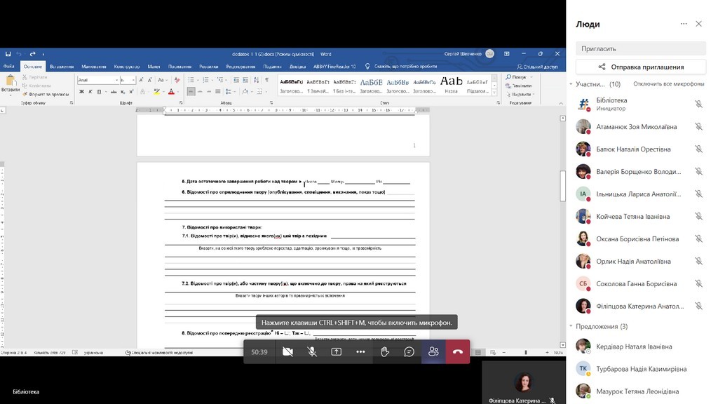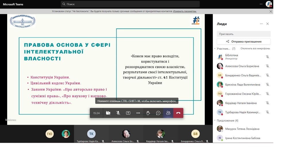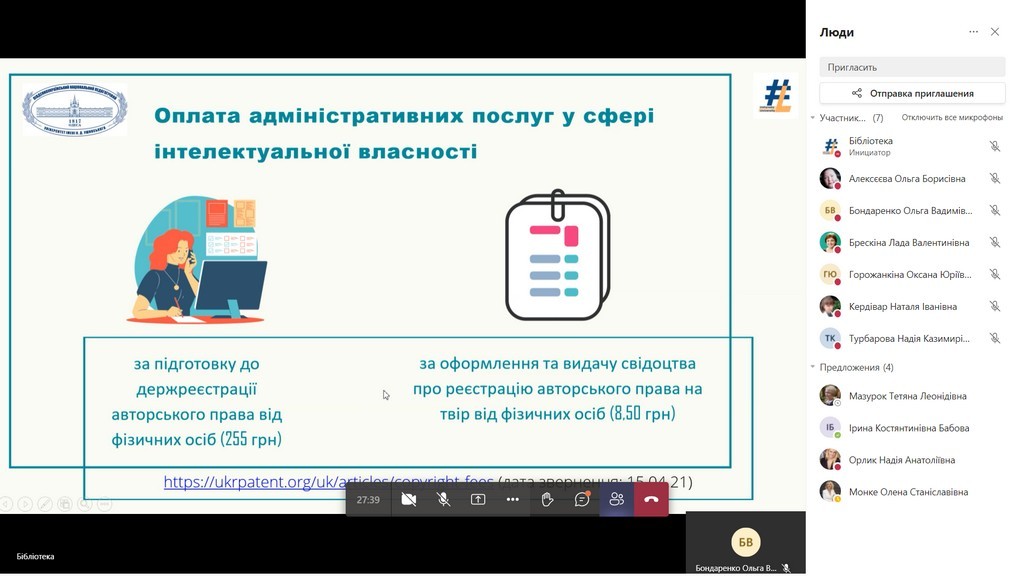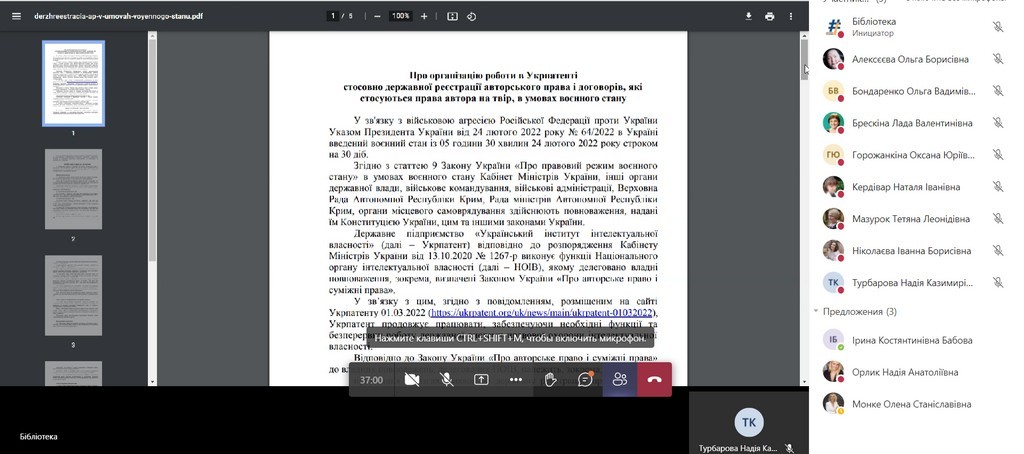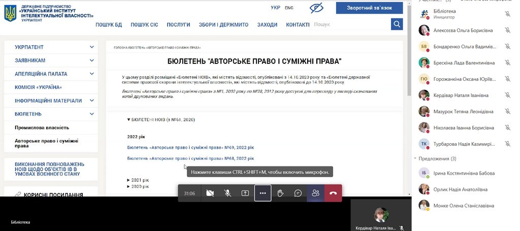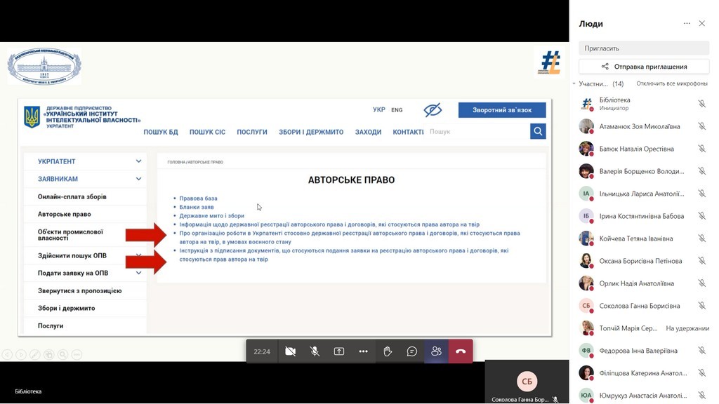 Olena Spasskova, Ph.D. in Arts, acting director of the library spoke about the new rules of copyright registration and agreements concerning the author's right to a work under martial law.