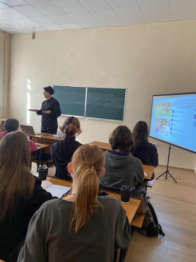 06 березня для здобувачів першого курсу денної форми навчання спеціальності 012 «Дошкільна освіта» було проведено відкриту проблемну лекцію з освітнього компонента «Теорія і методика фізичного виховання дітей у закладах дошкільної освіти» на тему «Фізичне виховання як суспільне явище». Лекторкою виступила докторка педагогічних наук, доцентка кафедри теорії та методики дошкільної освіти Університету Ушинського Руслана Найда.
