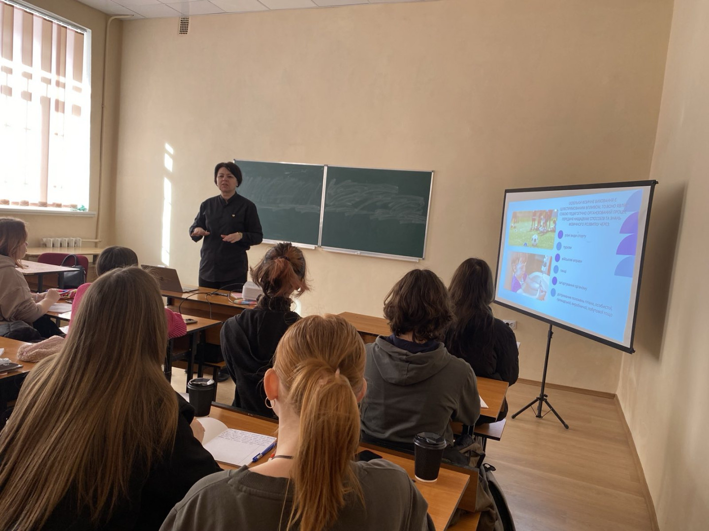 Лекційне заняття відбулося у форматі активної взаємодії зі студентами з використанням сучасних технічних засобів навчання. У ході проблемної лекції здобувачі освіти мали можливість долучитися до обговорення та висловити свої думки щодо ролі фізичного виховання у суспільстві, його значення для гармонійного розвитку особистості, формування здорового способу життя та збереження національних традицій фізичної культури. Жвава дискусія сприяла глибшому розумінню студентами сучасних підходів до фізичного виховання, його впливу на фізичний, емоційний і соціальний розвиток дітей дошкільного віку, а також важливості інтеграції фізкультурно-оздоровчих технологій у педагогічну діяльність.