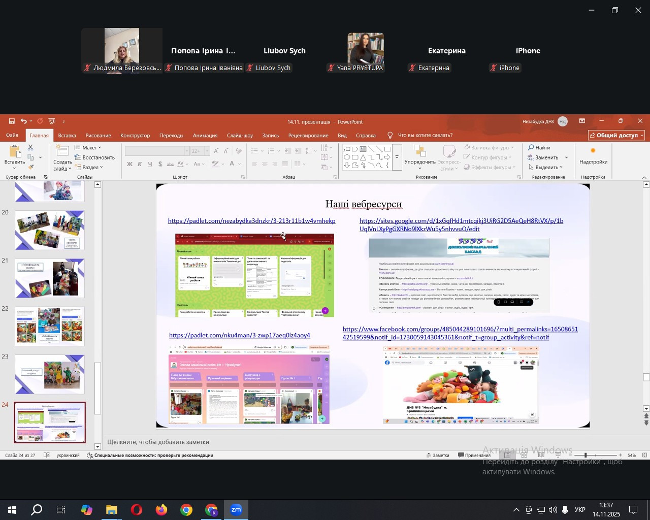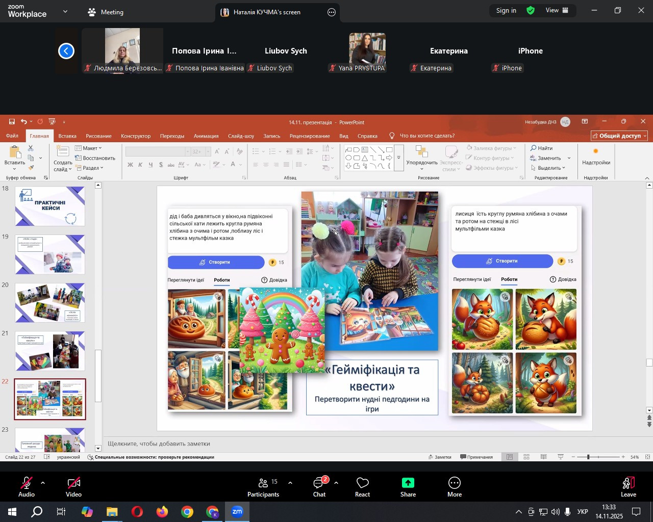 Значну увагу лекторка приділила практичним аспектам організації методичної роботи в ЗДО, поділившись цікавими кейсами з власного досвіду, які стосувалися ефективного управління педагогами, оптимізації їхньої взаємодії, вирішення проблемних ситуацій у професійній діяльності; розповіла про принципи та етапи планування методичної роботи, продемонструвала, як грамотне планування сприяє підвищенню рівня професійної компетентності педагогічного колективу, стимулює до творчого пошуку та впровадження інновацій у освітній процес; навела приклади успішної організації методичних об’єднань, творчих лабораторій, які забезпечують не лише обмін досвідом, а й розвиток креативності, інноваційного мислення та ініціативності у педагогів.