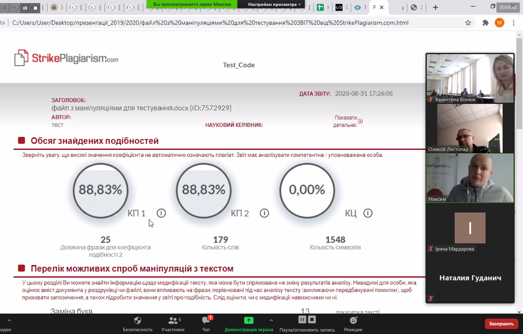 У заході взяв участь директор з розвитку компанії Plagiat.pl Максим Маєвський (система StrickPlagiarism.com), який розповів про нові можливості системи щодо перефразування та надав відповіді на поширені запитання щодо махінацій з текстом і правильної інтерпретації звітів подібності.
