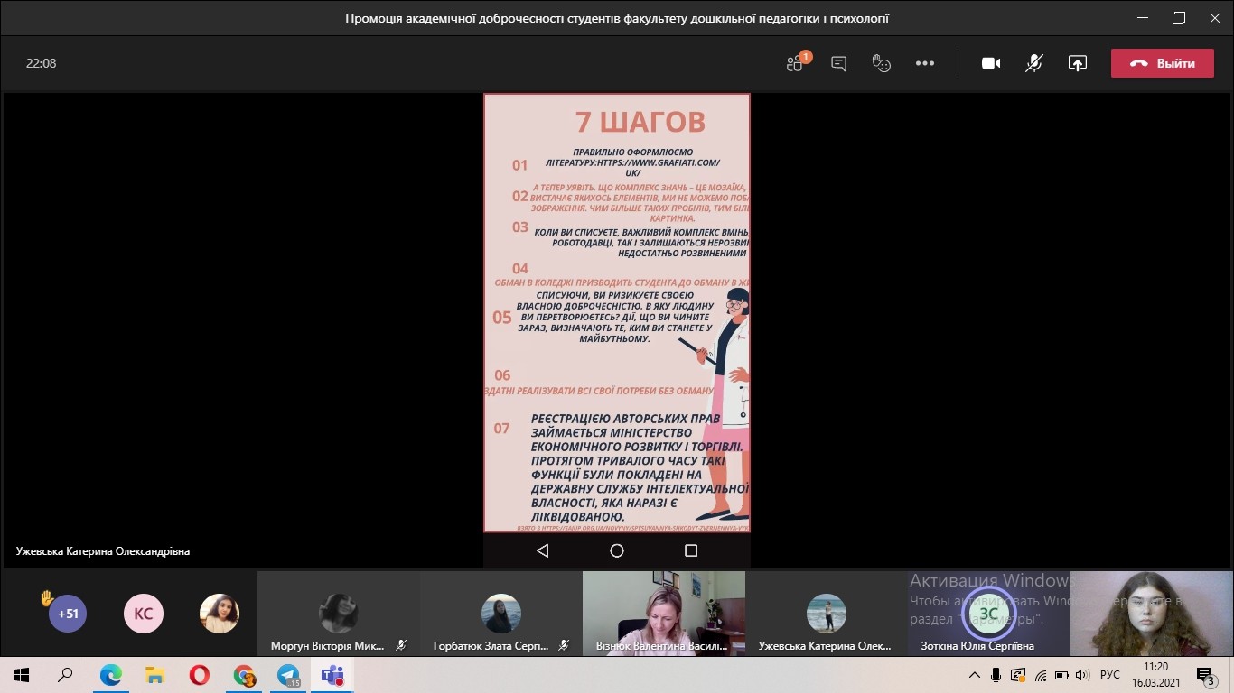 Під час промоції студентки демонстрували інфографіки, особливу увагу звернули на необхідність авторської думки в дослідницькій роботі та надали поради іншим здобувачам освіти щодо запобігання академічному плагіату.