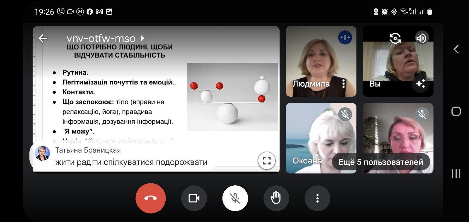 07.04.2022 року відбулося навчання від психологічного центру "FIDES", для викладачів кафедри сімейної та спеціальної педагогіки і психології. Тема тренінгу. "Як захистити себе та дитину від стресових реакцій в критичних ситуаціях". Тренер – Матохнюк Л. О. – доктор психологічних наук, професор, практичний психолог, голова Вінницького міського відділення Асоціації сімейних психологів України, психолог ПЦ ''FIDES".