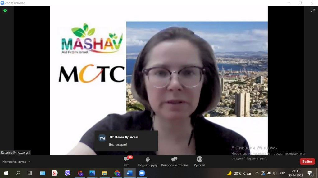 Організатор вебінару: ізраїльська агенція міжнародного співробітництва в галузі розвитку МАШАВ, та група психологів із Ізраїлю, які працюють в «проєкті екстреної психологічної допомоги Україні – навчання та супервізія психологів, які працюють в Україні та за її межами». Вдячні Стейсі Йошуа, клінічному психологу та психотерапевту, яка прочитала лекцію, присвячену допомозі дітям, які пережили травму.
