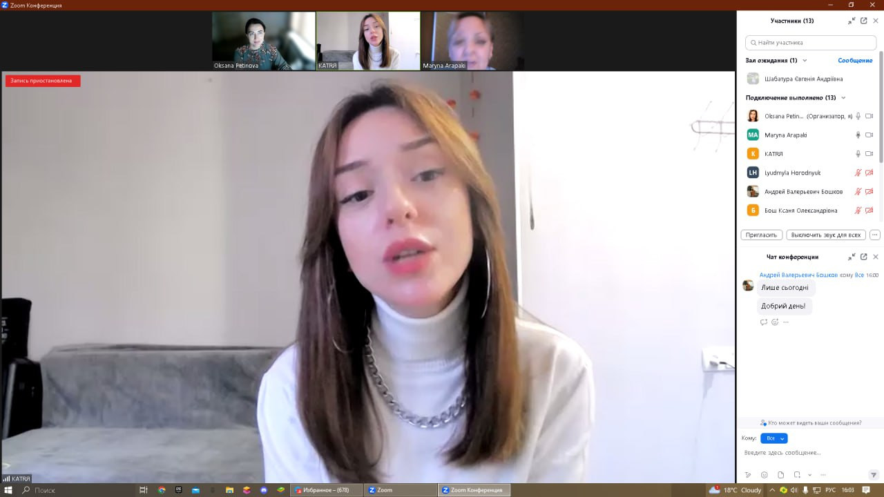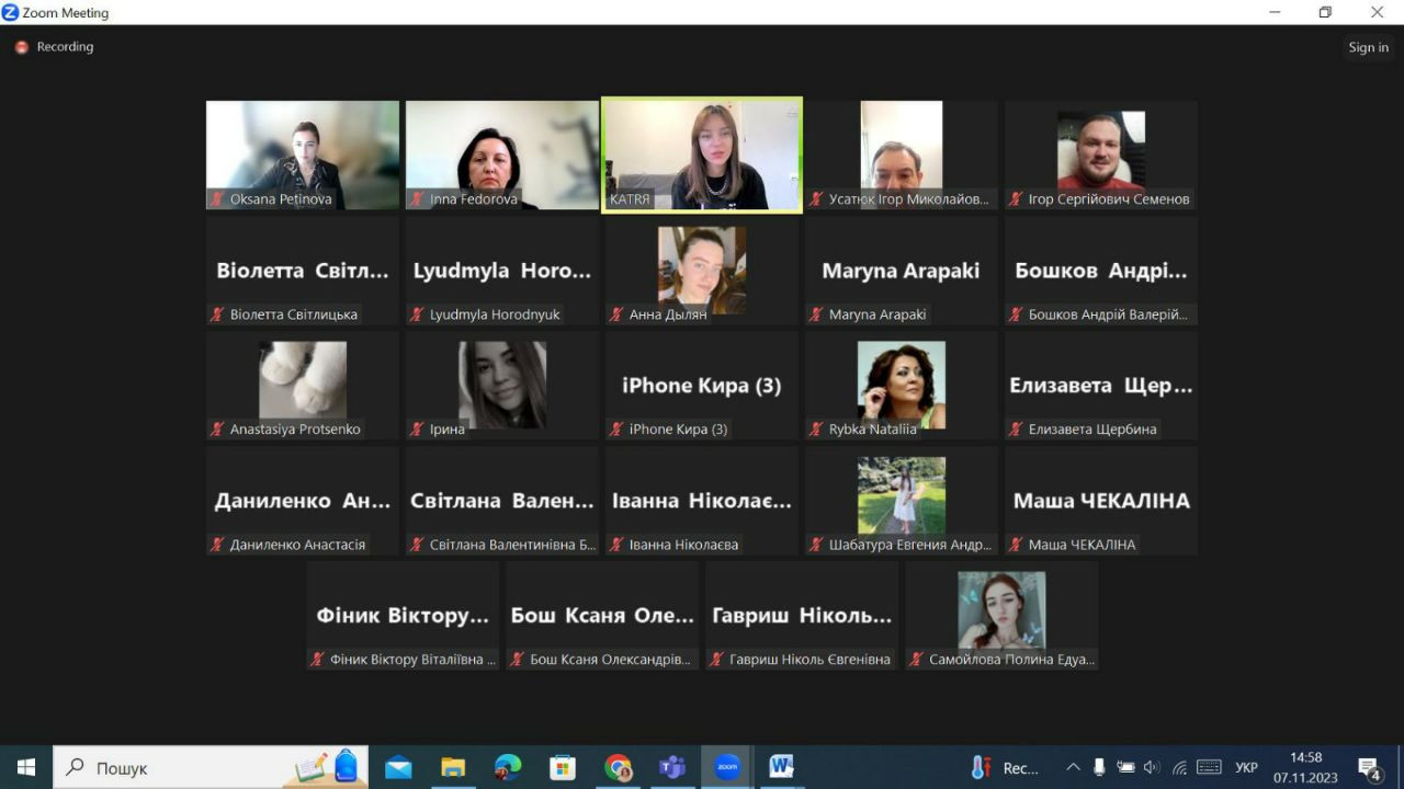 Надзвичайно захоплюючим для всіх учасників корпоративного навчання «Міжкультурна комунікація та мистецтво публічного виступу», яке проводиться в межах україно-китайського освітньо-наукового проєкту «Освіта в глобалізованому суспільстві: філософія, менеджмент, культура (сучасні тенденції, економічні опції та міжнародні практики)» на базі Південноукраїнського центру професійного розвитку керівників та фахівців соціономічної сфери Університету Ушинського стало опрацювання 1-го модулю. Тиждень проминув непомітно… Говорили та дискутували про особливості життя в Китаї під час пандемії COVID-19; аналізували позицію інформаційного простору КНР в контексті російсько-української війни. Вразила лекція «Людина та її ідентичність: мовне питання на прикладі корінних народів Китаю». Із задоволенням студенти та аспіранти запитували про особливості розвитку української та китайської молоді в контексті проблематики інформаційної епохи, – освіта, культура, міжособистісні стосунки, їжа і спорт, б’юті-сфера… це лише загальний перелік тем, яких торкалися під час занять. Катерина Ткаченко – кандидатка філософських наук, спікерка заходу, із великим задоволенням ділилася власним досвідом, наводила приклади з життя, відповідала на запитання учасників. Разом із кураторкою проєкту проф. Оксаною Петіновою відзначала провідне значення міжнародної взаємодії у формуванні нової архітектури сучасної системи міжнародних відносин в системі освіти. Серед найбільш активних учасників – аспіранти ОНП «Філософія», – Віолета Світлицька, Інна Федорова, Людмила Городнюк, Марина Арапакі.