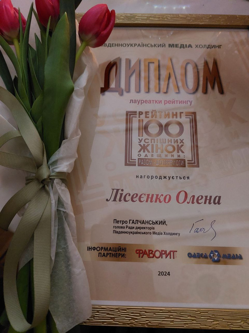 Олена Лісеєнко - лауреат рейтингу «100 Успішних Жінок Одещини: разом – до Перемоги!»