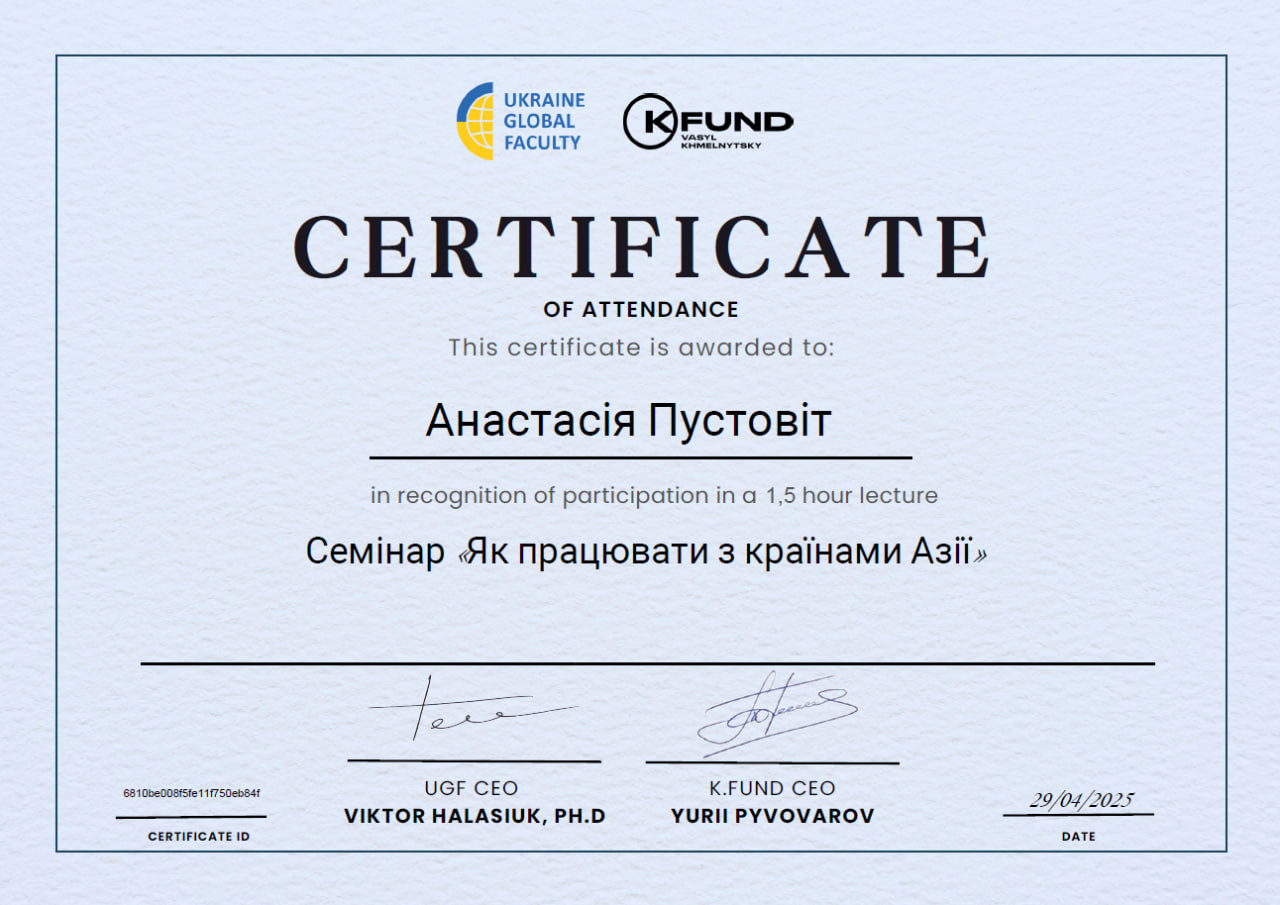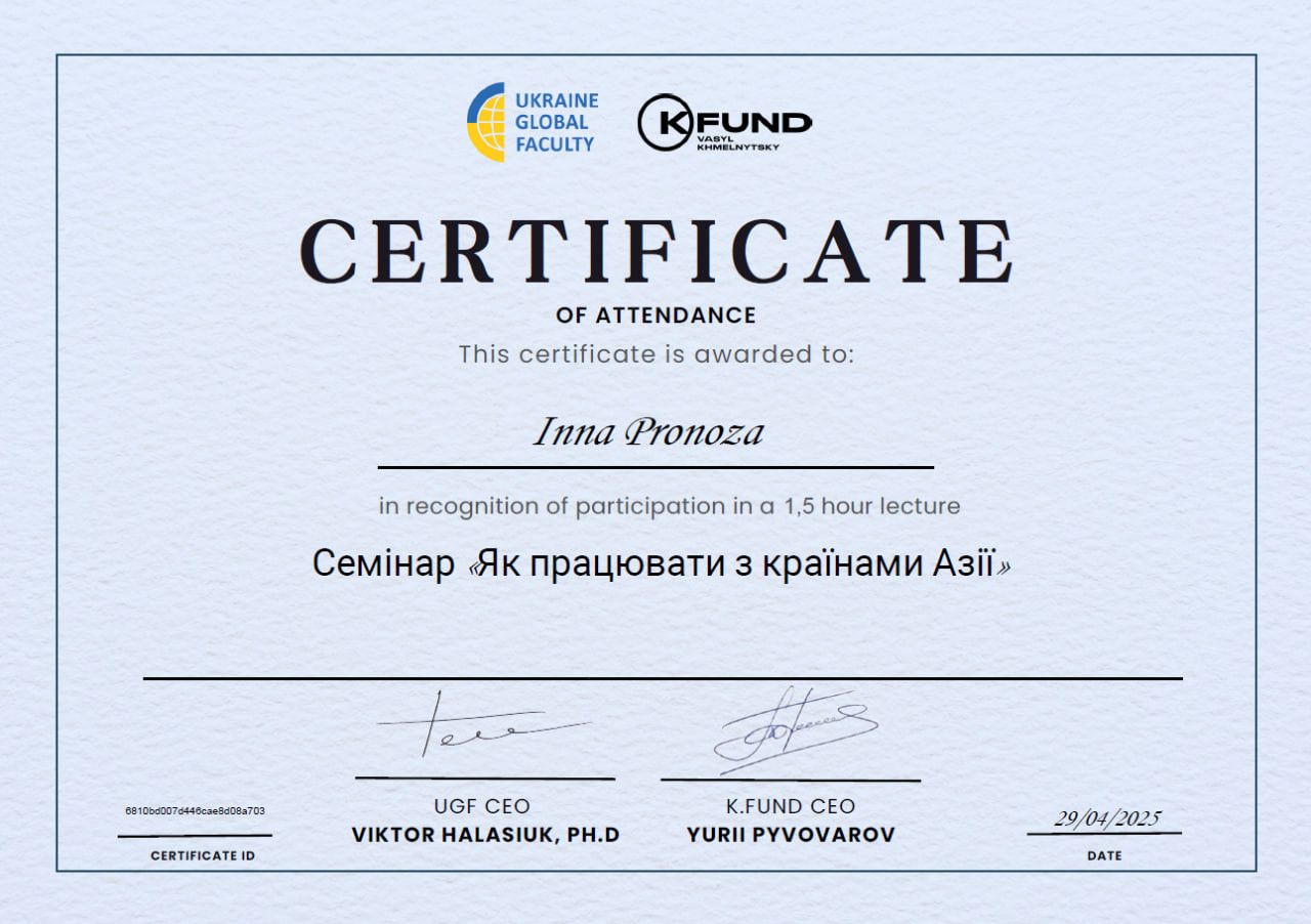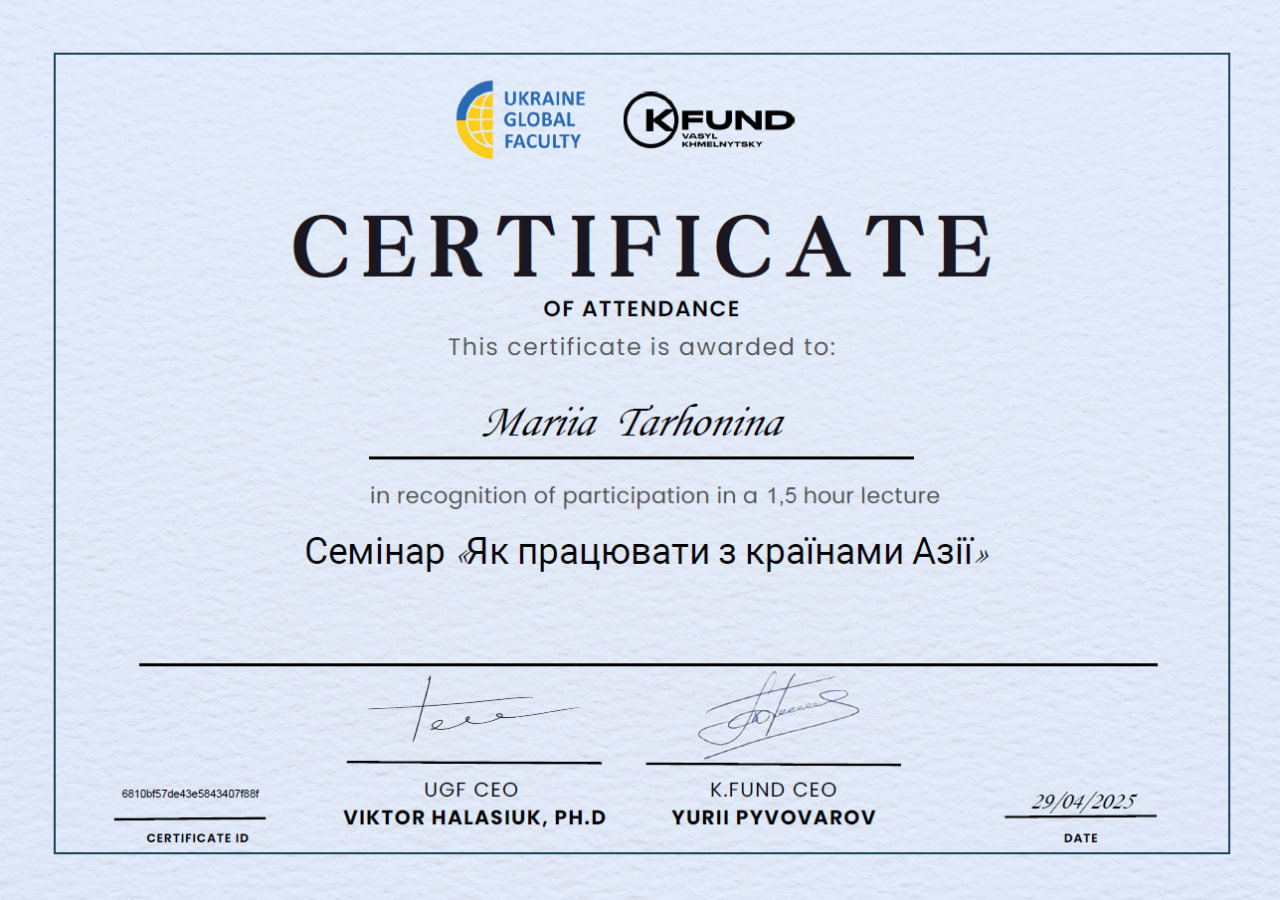 Щиро дякуємо команді Ukraine Global Faculty за можливість приєднуватися до якісних освітніх ініціатив та бути частиною міжнародної академічної спільноти!