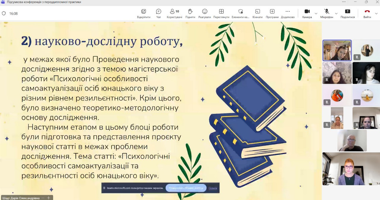 Підсумкова конференція з переддипломної практики здобувачів 2 курсу ОПП «Практична психологія. Екстремальна та кризова психологія" за спеціальністю 053 Психологія за другим (магістерським) рівнем вищої освіти денної форми навчання