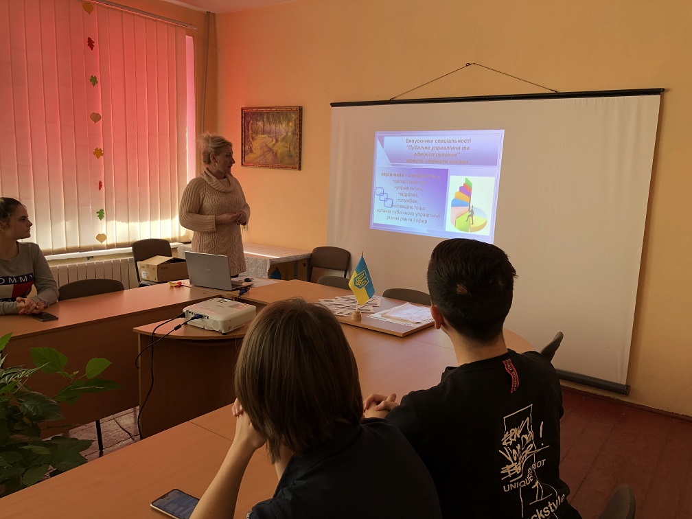 3-4 березня 2020 року для учнів 10-11 класів Йосипівської ЗОШ І-ІІІ ступенів Овідіопольського району Одеської області було проведено профорієнтаційну бесіду про особливості вступу та навчання за спеціальністю 281 Публічне управління та адміністрування. До профорієнтаційної роботи долучилася випускниця кафедри освітнього менеджменту та публічного управління Поповіченко Ірина Анатоліївна, педагог школи, яка презентувала інформаційні матеріали учням та провела роз’яснювальну бесіду.