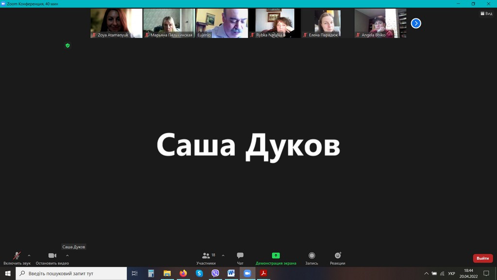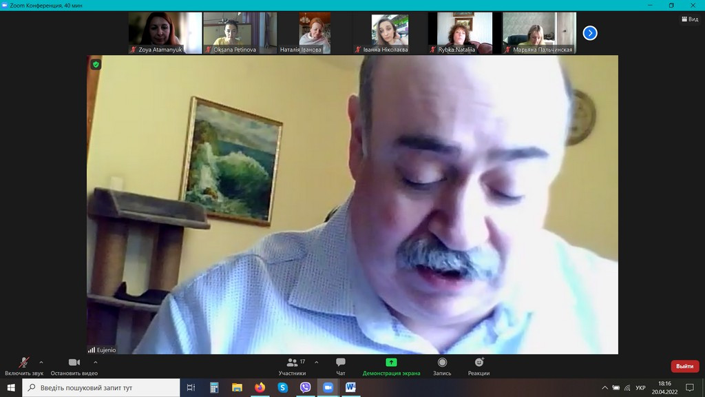 20 квітня 2022 року відбулося в он-лайн форматі обговорення проєктів ОНП та ОПП «Філософія» третього (освітньо-наукового), другого (магістерського), першого (бакалаврського) рівнів вищої освіти за спеціальністю 033 «Філософія» галузі знань 03 «Гуманітарні науки».