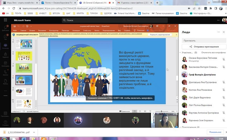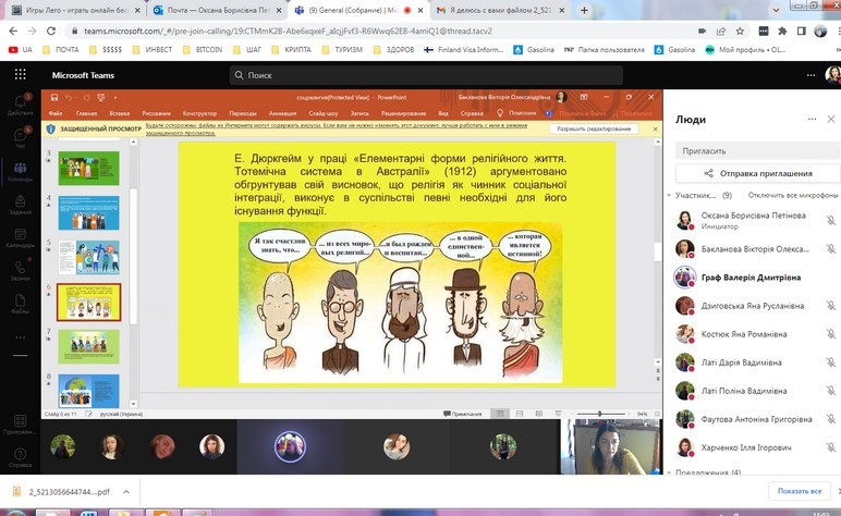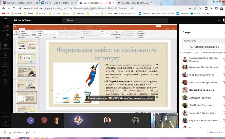 В засіданні взяли участь студенти факультету початкового навчання та факультету іноземних мов, зокрема, з презентаціями виступили Бакланова Вікторія, Граф Валерія, Дзиговська Яна, Костюк Яна, Харченко Ілля та інші. Було проаналізовано особливості економічних, освітніх, культурних, політичних соціальних інститутів, розглянуто ключові зміни інститутів в умовах воєнного стану. Засідання супроводжувалось жвавою дискусією та аналізом проблемних питань.