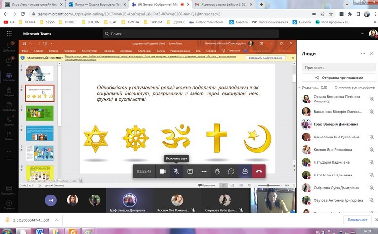 27 квітня 2022 року відбулося засідання в он-лайн форматі наукового гуртка, що діє на кафедрі філософії, соціології та менеджменту соціокультурної діяльності, «Південноукраїнські наукові студії» (керівник – проф. Петінова О. Б.); за бажанням гуртківців для обговорення було обрано тему «Соціальні інститути в сучасному суспільстві».